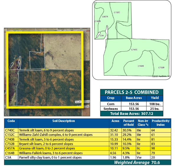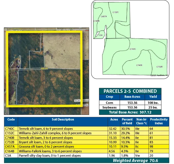 Parcel 4 offers all cropland, featuring strong soils with an SPI over 72. This efficient, high-performing parcel is well-suited for consistent crop production.