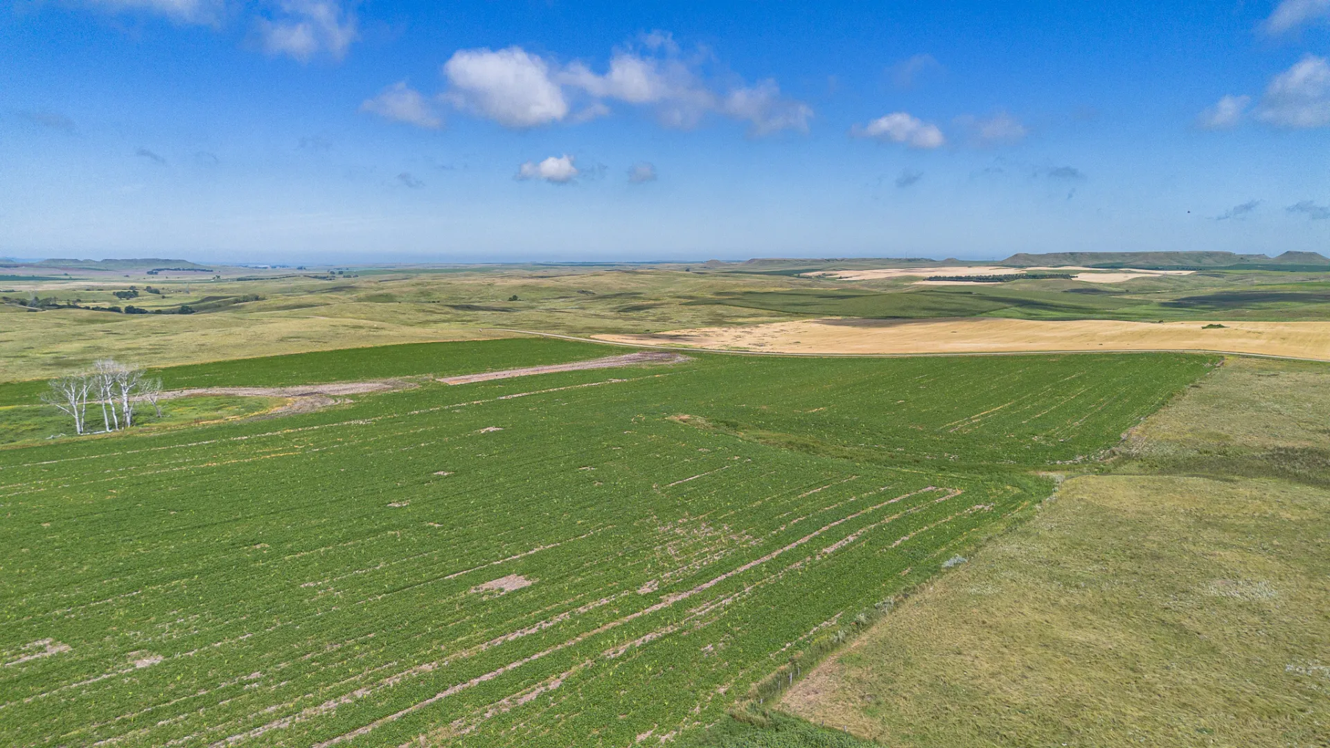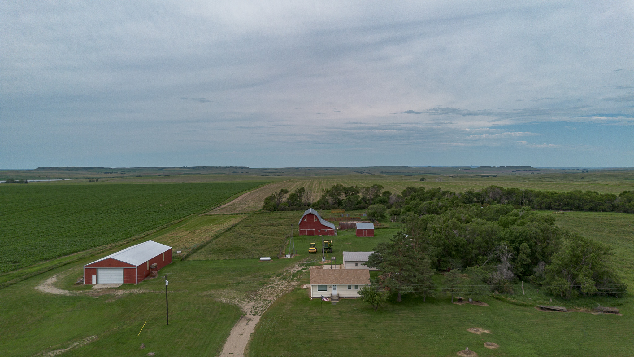 Parcel 2 is a diverse property featuring approximately 81 +/- acres of cropland with an SPI over 79, and 63 +/- acres of lush pasture with a reliable water source. The well-maintained farmstead includes a mature shelter belt, functional outbuildings, corrals, and a tidy, well-kept home.