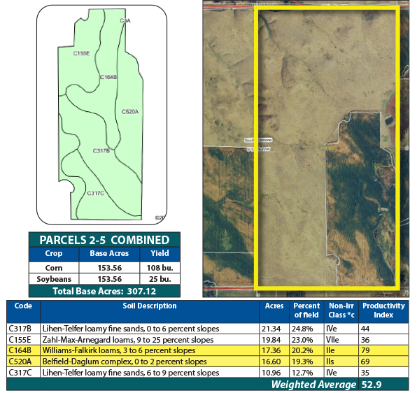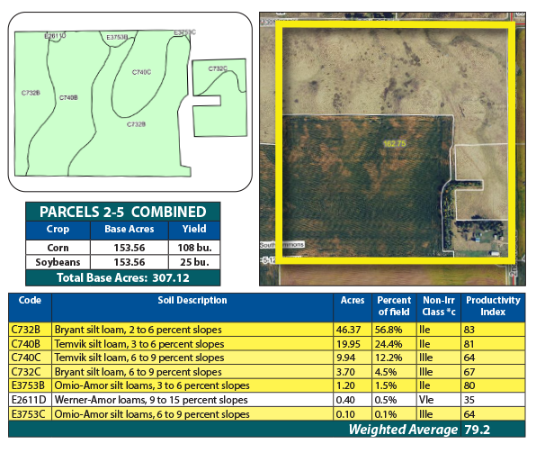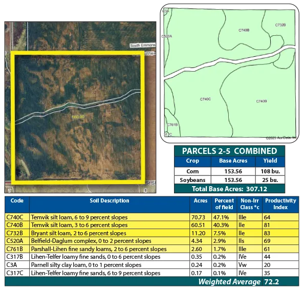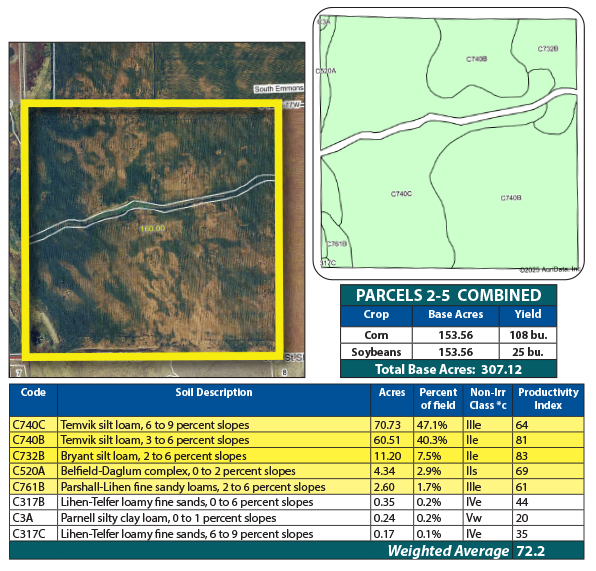 Parcel 4 offers all cropland, featuring strong soils with an SPI over 72. This efficient, high-performing parcel is well-suited for consistent crop production.