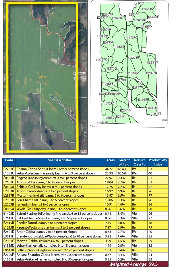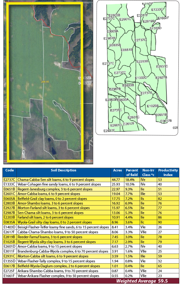 This farm features productive and diverse farmland with 215 +/- acres of highly productive cropland with mostly loam soils and a strong cropping history. The balance of the farm is pastureland with perimeter fencing, native grasses and a dugout providing excellent resources for fall cattle grazing. The rolling foothills in the northeast corner provide natural shelter and prime habitat for upland game and whitetail deer.