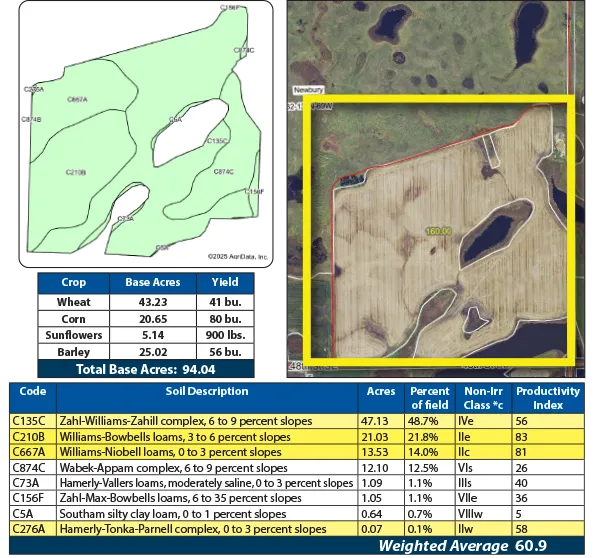 This auction features 541.34 +/- acres of productive farmland in Kidder & Stutsman Counties, ND. The parcels are located in Newbury and Graf townships. Parcel one features a mix of productive cropland and lush pasture. Parcel two features over 300 +/- acres with productive crop acres and mature tree rows and grassland areas with excellent wildlife habitat. Parcel three contains 80 +/- acres of mostly cropland currently planted to rye with easy access along the north border of the property. This will be a live auction held in Jamestown, ND with online bidding available. Don't miss this opportunity to expand your farm operation or diversify your investment portfolio!