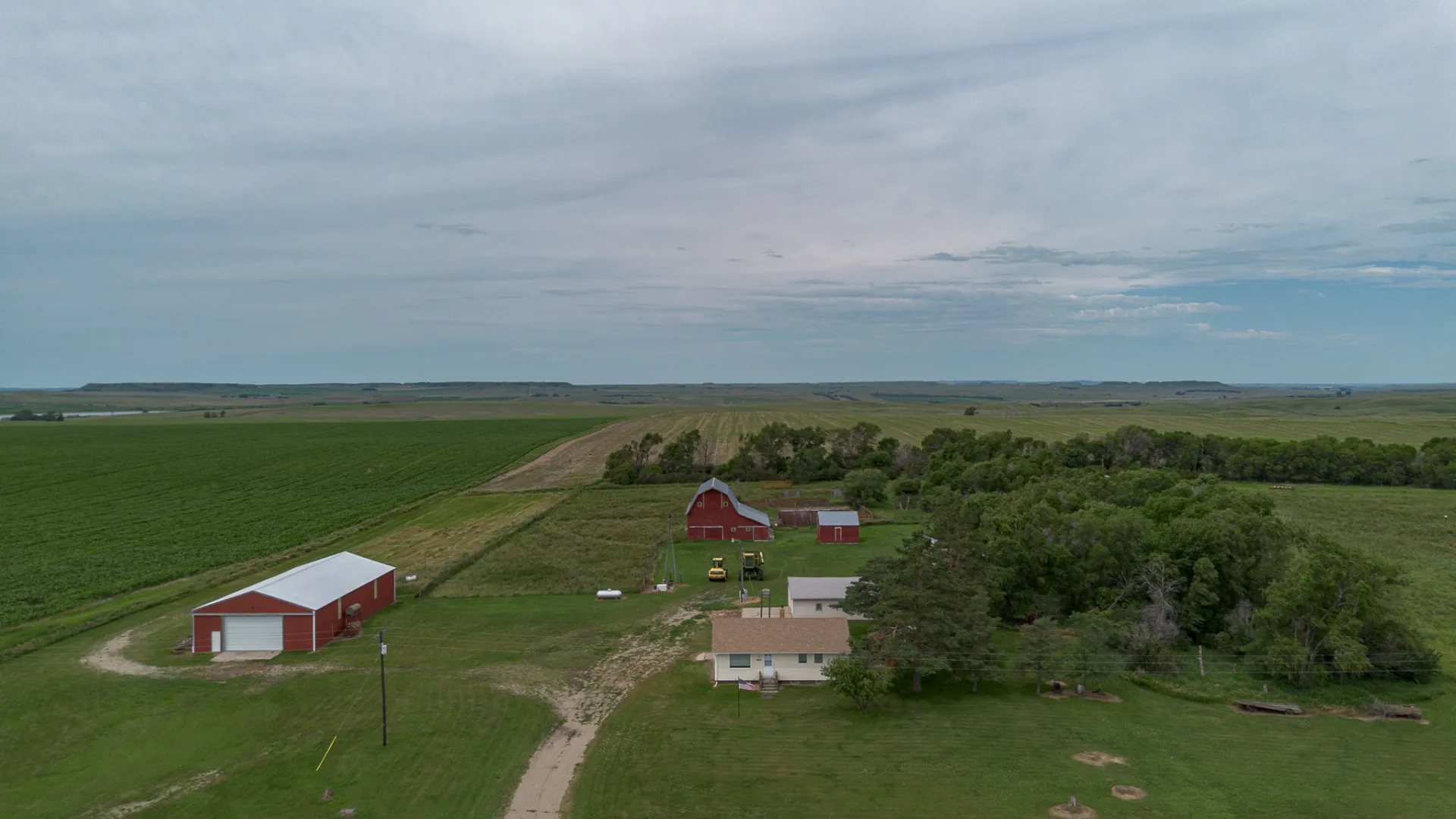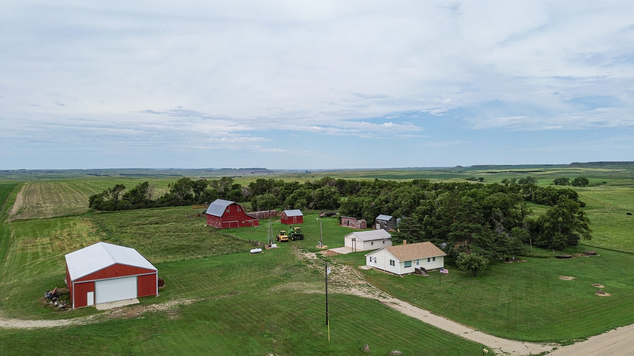 Parcel 2 is a diverse property featuring approximately 81 +/- acres of cropland with an SPI over 79, and 63 +/- acres of lush pasture with a reliable water source. The well-maintained farmstead includes a mature shelter belt, functional outbuildings, corrals, and a tidy, well-kept home.