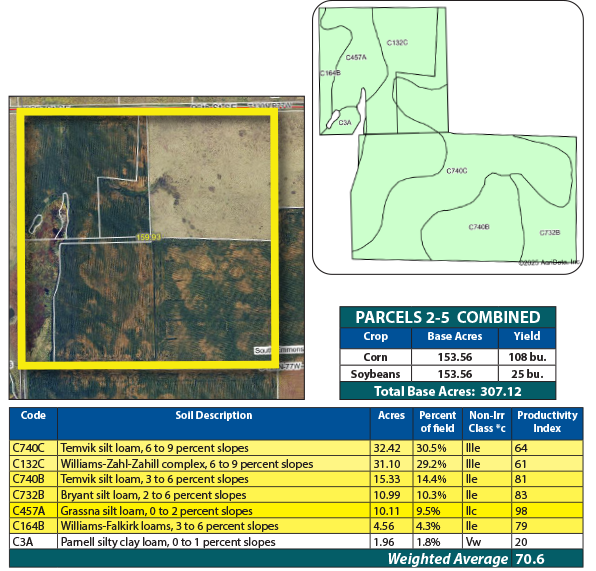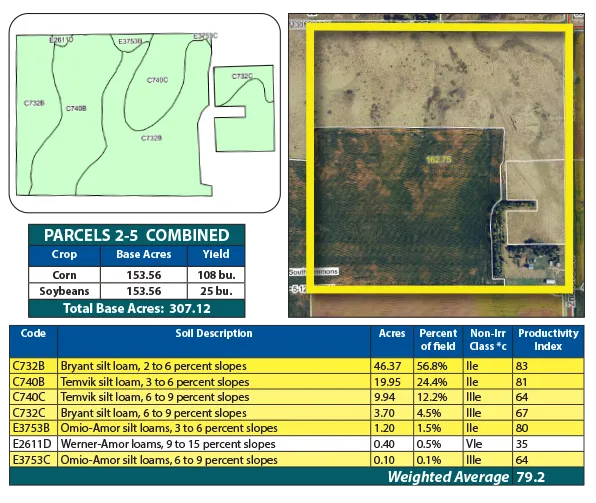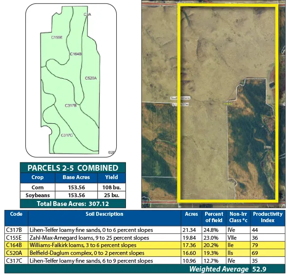 Parcel 4 offers all cropland, featuring strong soils with an SPI over 72. This efficient, high-performing parcel is well-suited for consistent crop production.