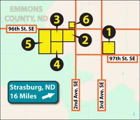 This exceptional, diverse farmland auction features over 1,000 +/- acres of highly productive farmland in Emmons County, North Dakota available in 6 parcels. This generational farm features a powerful combination of productive cropland and lush pastureland, making it ideal for both farming and ranching. The cropland is primarily Bryant and Temvik loam soils, known for their fertility and strong yield potential with some Soil Productivity Indexes (SPI) exceeding 90! The pastureland is native grassland, fenced and includes water sources, providing excellent conditions for grazing livestock. Parcel 3 includes an established farmstead, offering functional infrastructure and added value for a turnkey operation or rural living. Don’t miss your chance to own premium farmland in a proven agricultural region. This land is available for the 2026 crop year! Contact us today for a full bidder’s packet and auction details.