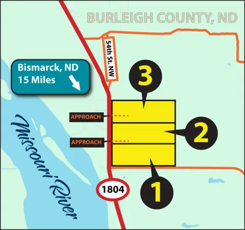 - Parcels 1 and 2 will have a shared approach off ND Hwy. #1804 for access while parcel 3 will have its own approach