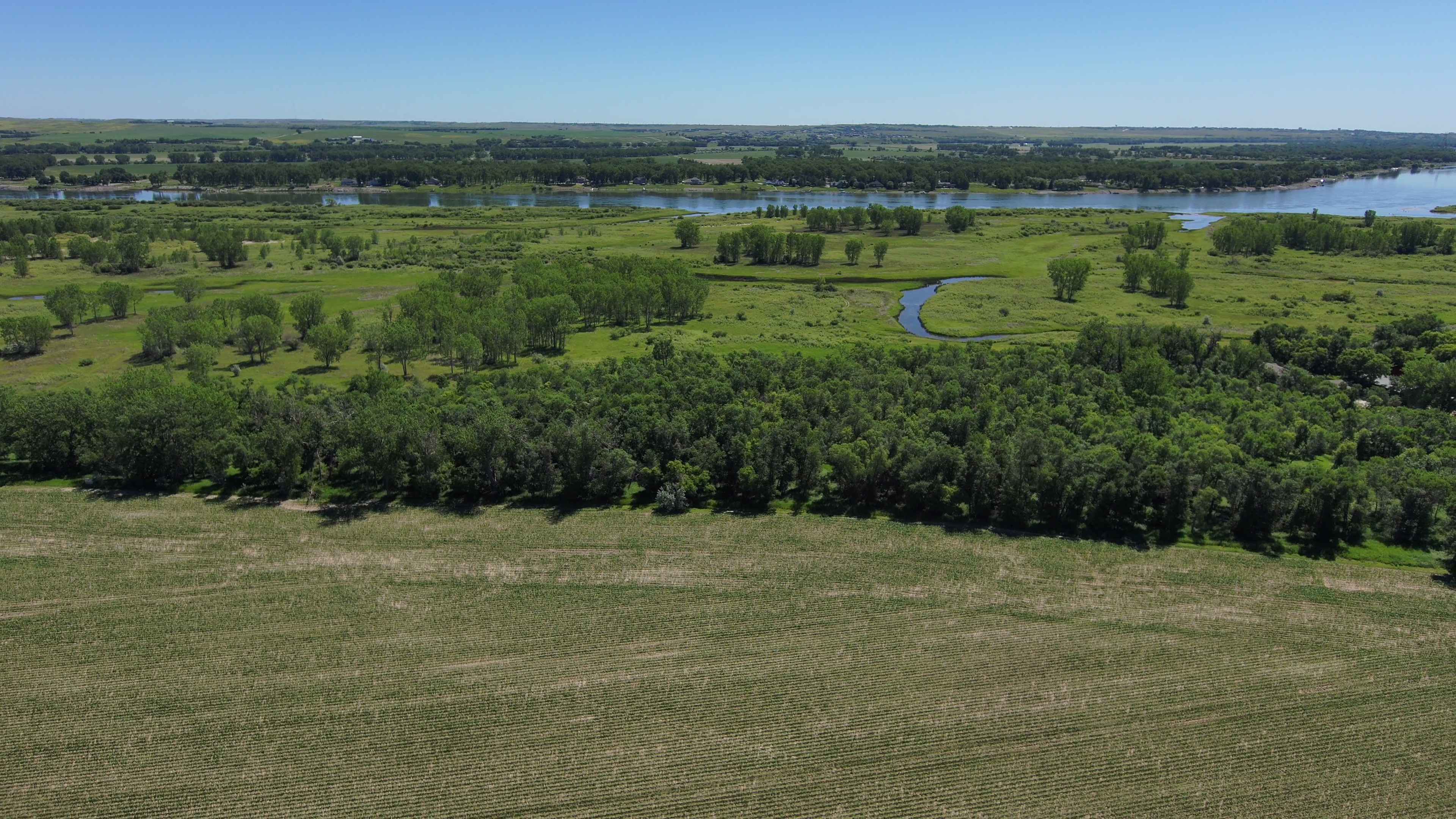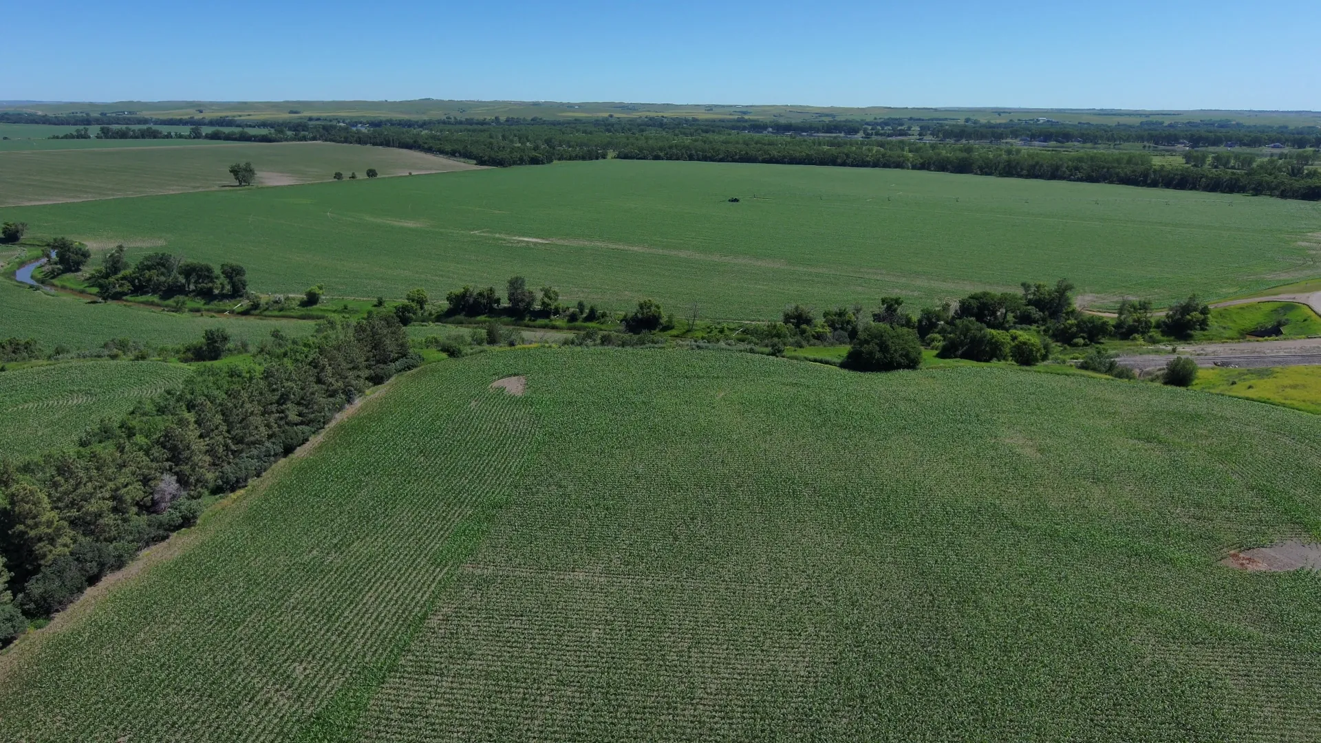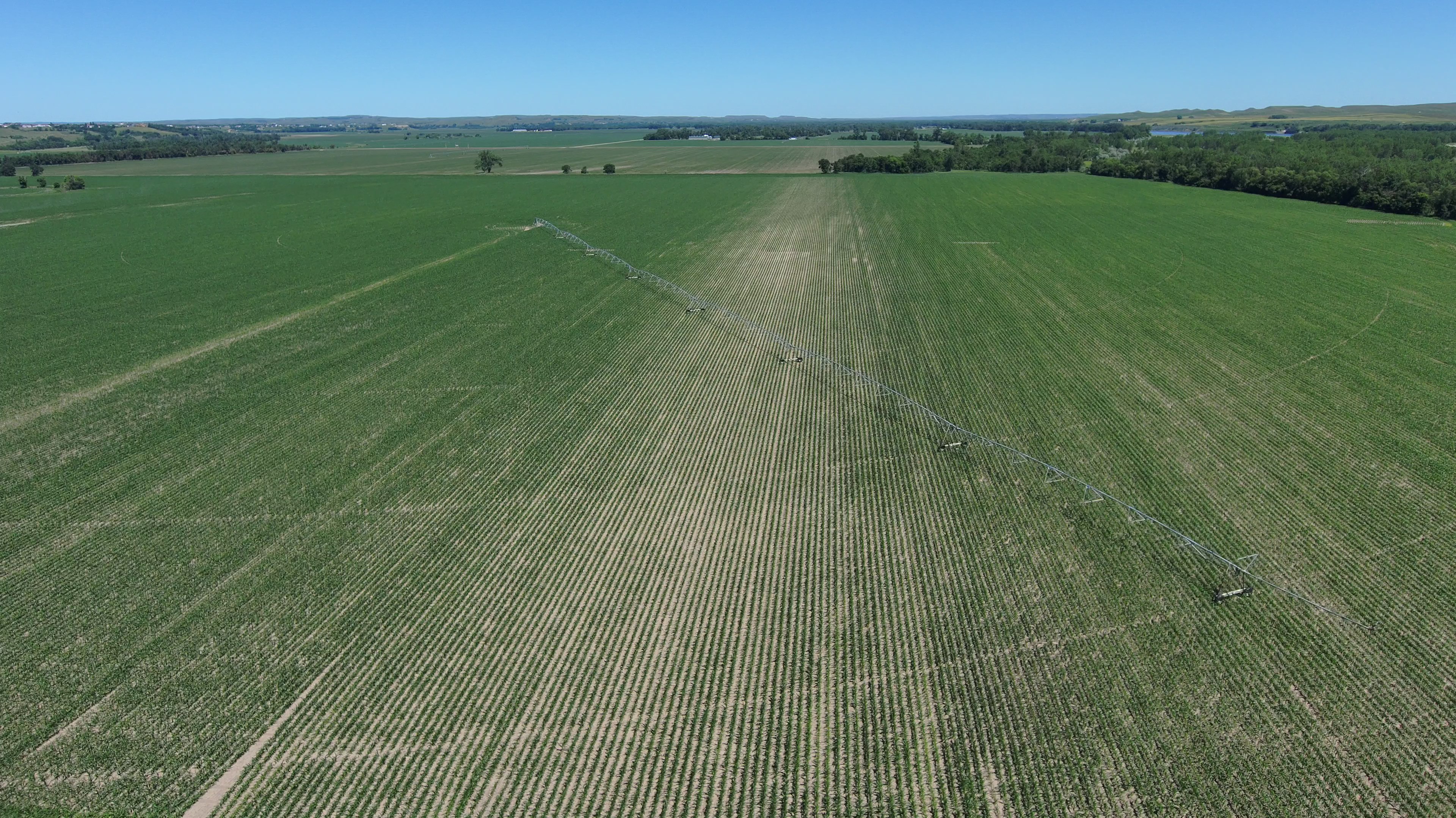 Outlot “A” SW¼ 28-140-81 (154.96 Acres Surveyed), and Outlot “F” in the SE¼ 29-140-81 (53.24 Acres Surveyed) will be sold as one unit. The irrigation diversion point on the Square Butte Creek is in Outlot “F”, with buried underground water pipeline to the Seven Tower, 1,297 ft. Lindsey Zimmatic irrigation system. The 7-tower system covers acreage on both Outlots “A”, and “F”.