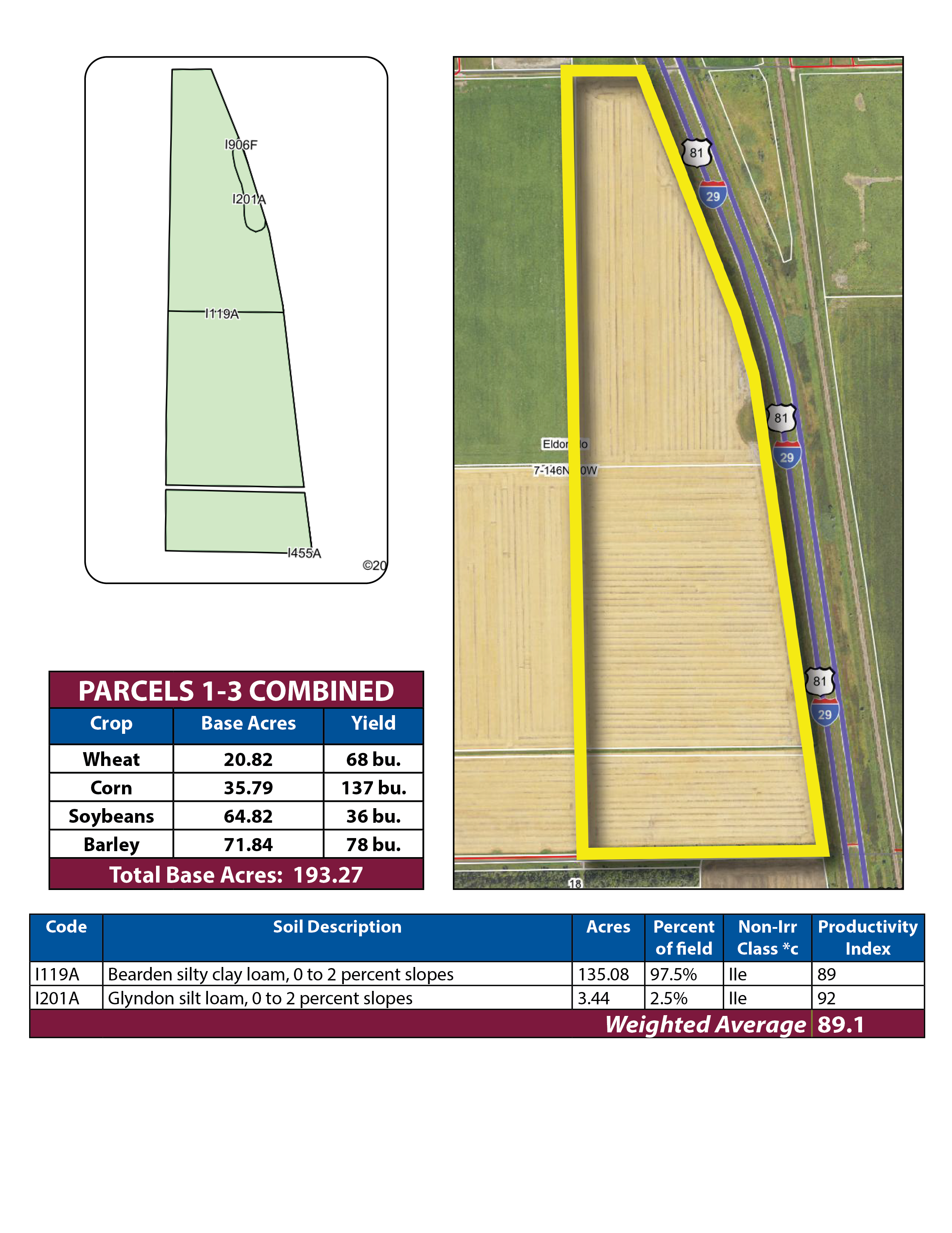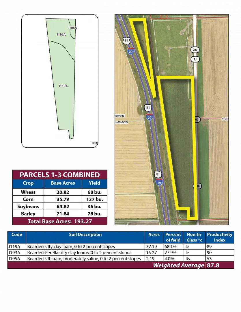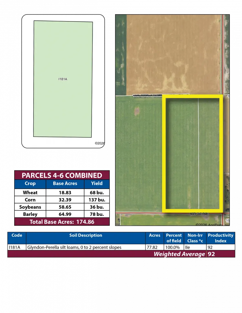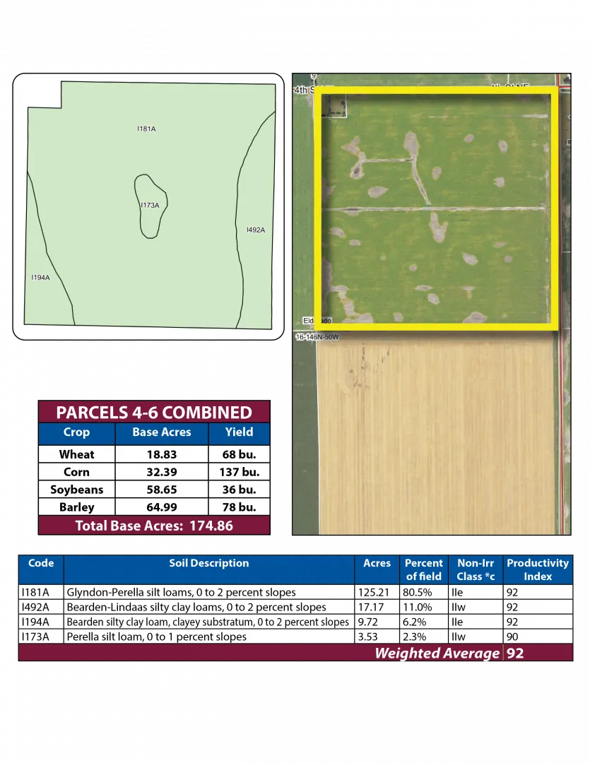 This Pifer’s land auction features 674.22 +/- acres of productive farmland in Traill County, North Dakota. All parcels are in Eldorado Township just north of Hillsboro, ND and are available to farm in 2026! Soil types include Glyndon-Perella silt loams, Bearden silty clay loam, and other productive loam soils with Soil Productivity Indexes (SPI) in the high 80s and 90s! Don’t miss this rare opportunity to expand your farm operation or diversify your investment portfolio with some of the most productive land in the Red River Valley!