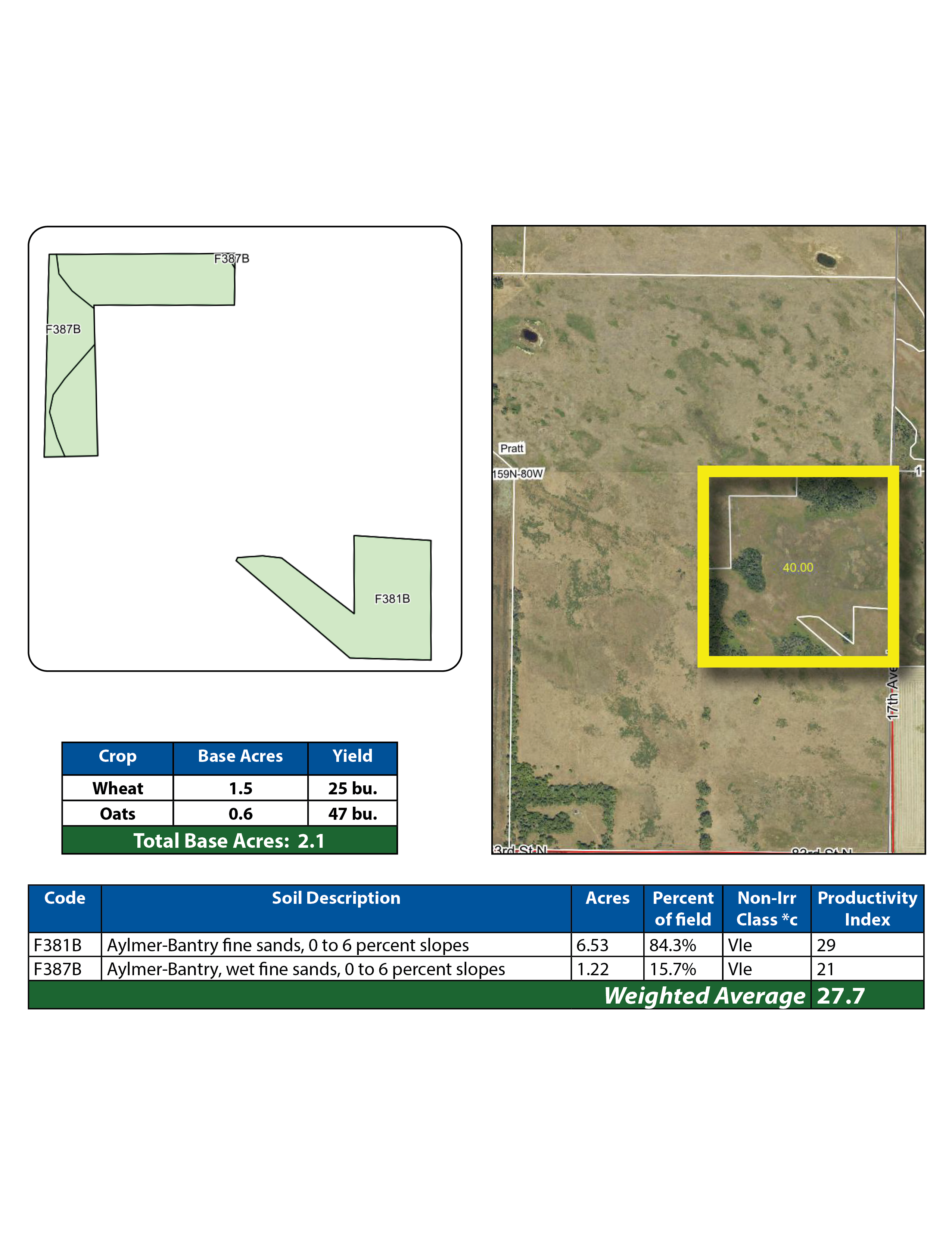 • The survey of Parcel 7 will reduce the FSA cropland acres on the parcels 5 and 6.