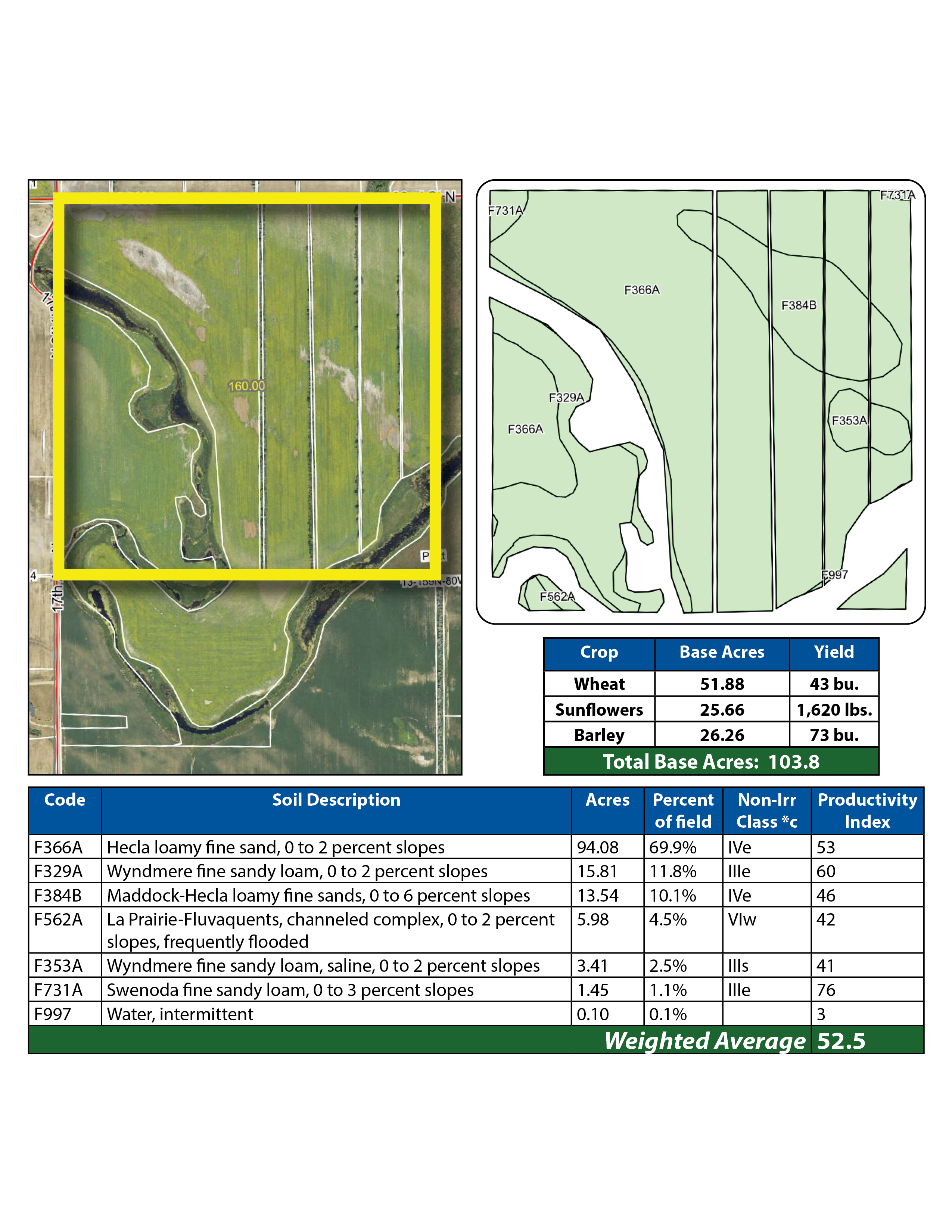 Parcel 3 has the best of both worlds; productive cropland with an average Soil Productivity Index (SPI) of 66.4 and 32 +/- acres of excellent deer habitat.