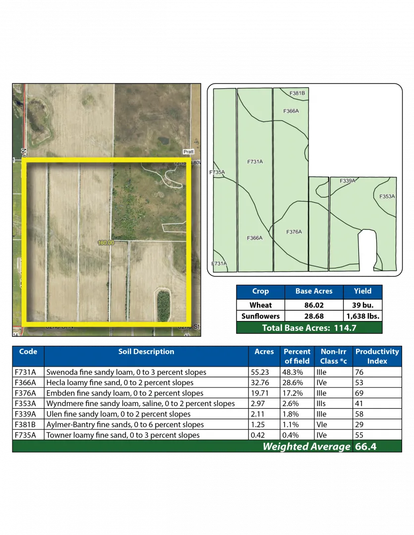 Parcel 1: From Upham, ND, go 9 miles west on 80th St. N to 16th Ave. N. Go 2 miles north on 16th Ave. N to 82nd St. N. Go 1 mile west on 82nd St. N to 17th Ave. N. Go 1.25 miles north on 17th Ave. N to parcel 1.