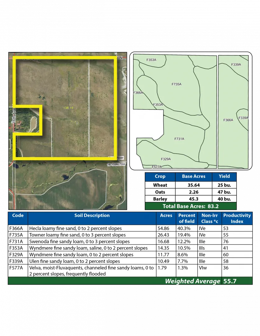 Legal: E½NW¼ Lots 1-2 Less 5 A & Less 12 +/- Acre Farmstead in 18-159-79