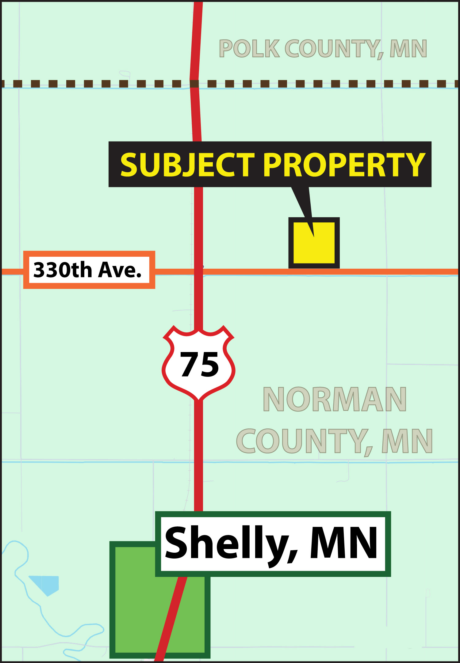 From Shelly, MN, go north 2 miles on US Hwy 75 and then 1/2 mile east on 330th Ave.  This will bring you to the southwest corner of the property.