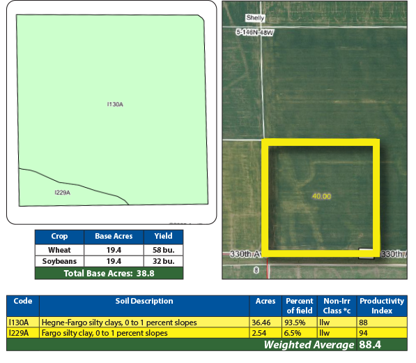 This exceptional 40 +/- acre property in Norman County, north of Shelly, Minnesota, presents a rare opportunity to acquire highly productive cropland. This 39 +/- acres of cropland is ideal for growing corn, sugar beets, wheat, sunflowers, and soybeans. Whether you're looking to expand your agricultural operations or diversify your investment portfolio, this property is an excellent choice! Available for the 2026 crop year and with excellent soil productivity index with an of 88 SPI, you don't want to miss this opportunity to secure prime agricultural land!