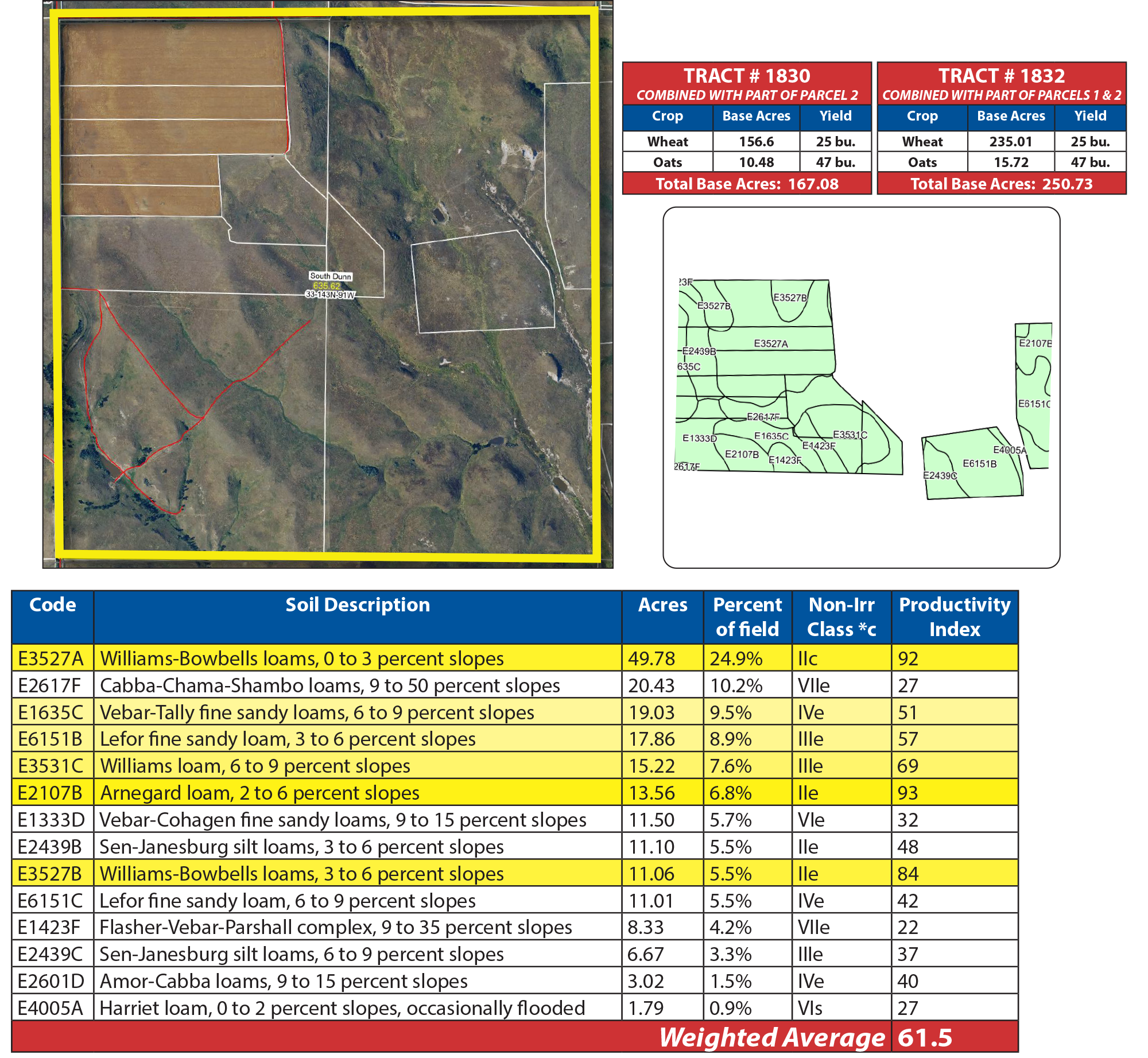 Parcel 1 offers a unique blend of opportunity and versatility. This property includes 151.8 +/- acres of high-quality cropland with a remarkable Soil Productivity Index (SPI) exceeding 84. Additionally, it provides productive grazing pastures with excellent access. The scenic draws along the southern border offers natural protection and valuable habitat for livestock and wildlife, making it an exceptional investment for agricultural producers and outdoor enthusiasts alike.