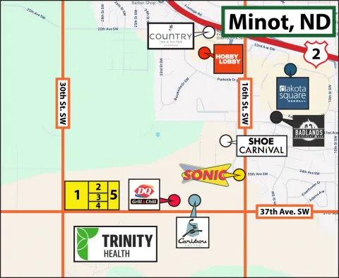 City services are already at the property line, and each lot has excellent visibility. This subdivision enjoys a premier location directly across from the new hospital campus, offering excellent access at the intersection of 37th Ave. SW and 30th St. SW. With Minot's continued growth on the southwest side, this is a rare opportunity to invest in development lots positioned for immediate or future development.
