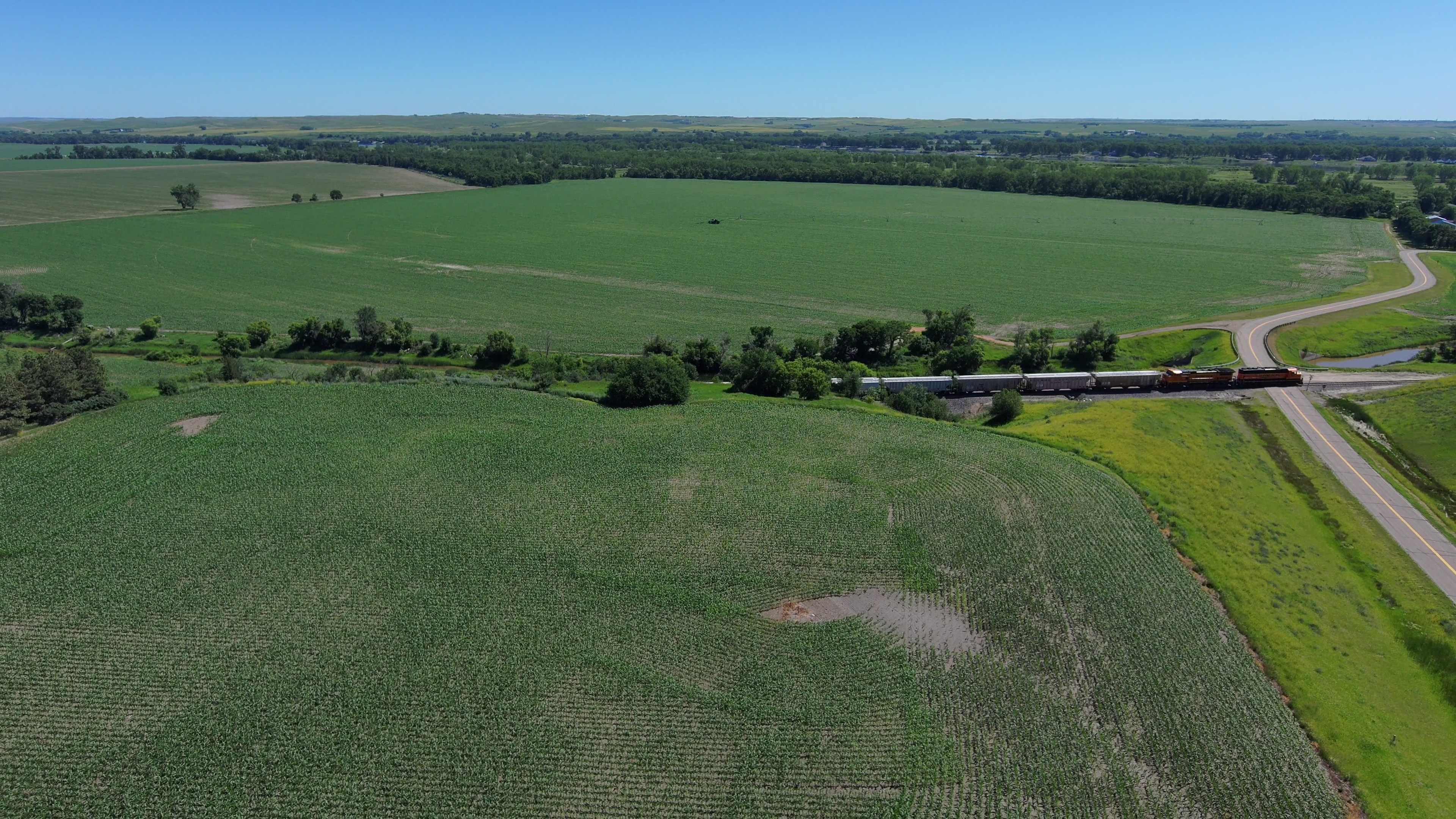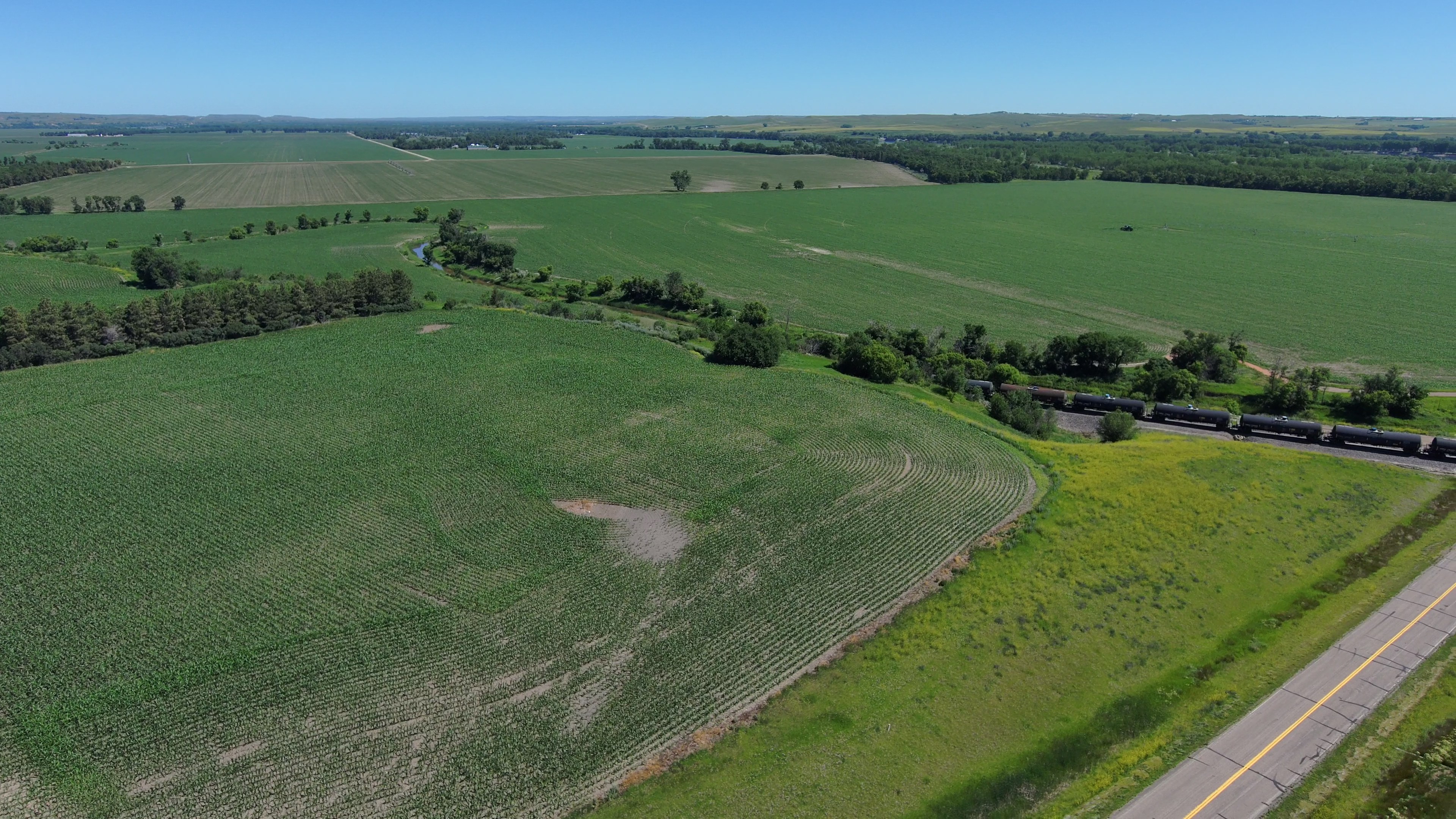 Outlot “A” SW¼ 28-140-81 (154.96 Acres Surveyed), and Outlot “F” in the SE¼ 29-140-81 (53.24 Acres Surveyed) will be sold as one unit. The irrigation diversion point on the Square Butte Creek is in Outlot “F”, with buried underground water pipeline to the Seven Tower, 1,297 ft. Lindsey Zimmatic irrigation system. The 7-tower system covers acreage on both Outlots “A”, and “F”.