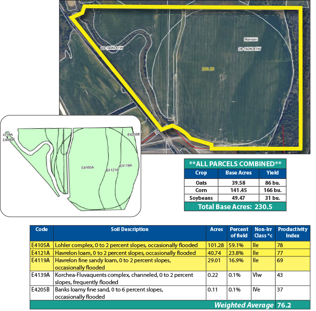 The soils on these two Outlots consists of mainly Class IIe and IIIe soils, with an SPI of 76.2. The soils in the Missouri River bottom land are well suited for irrigation and a variety of crops.