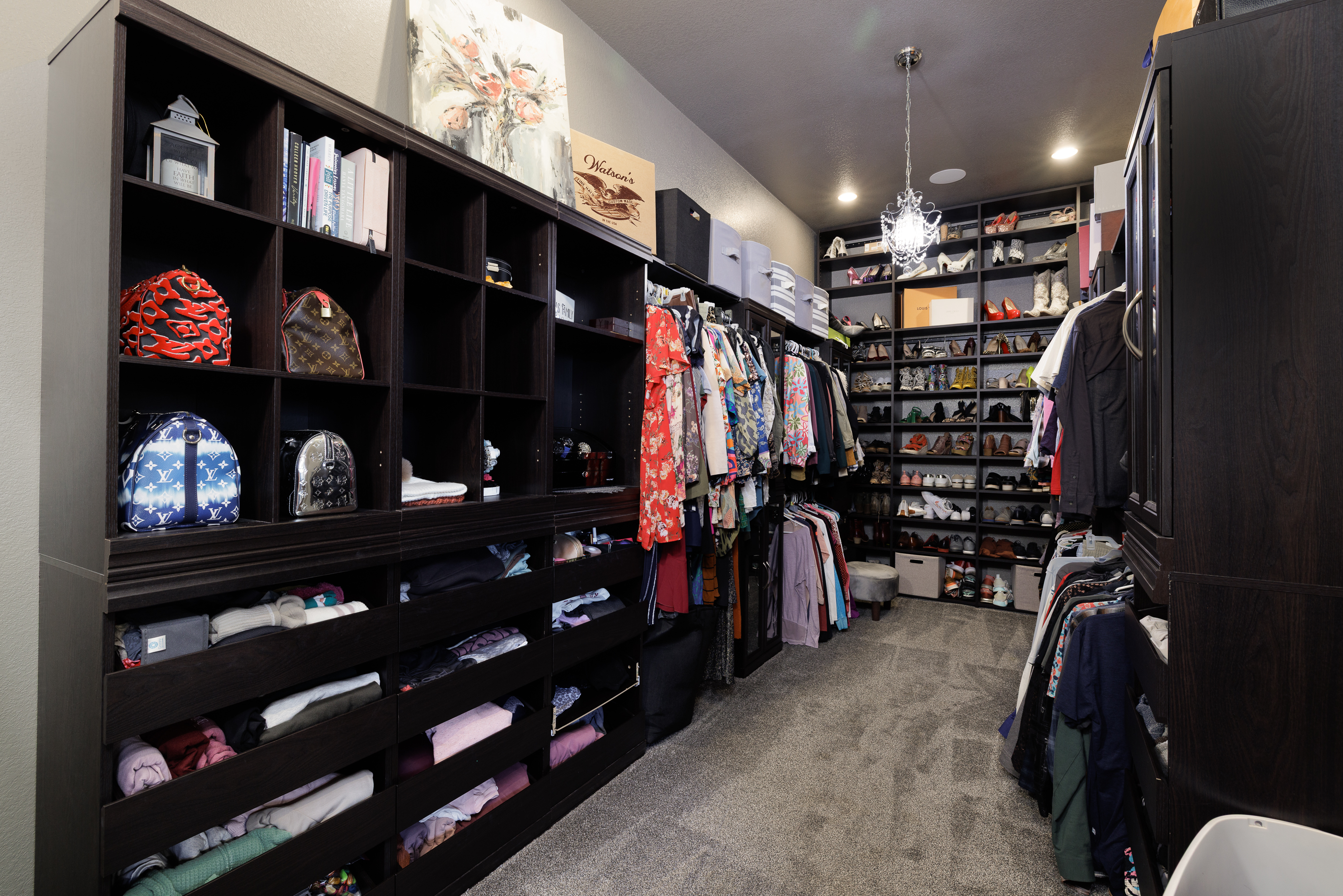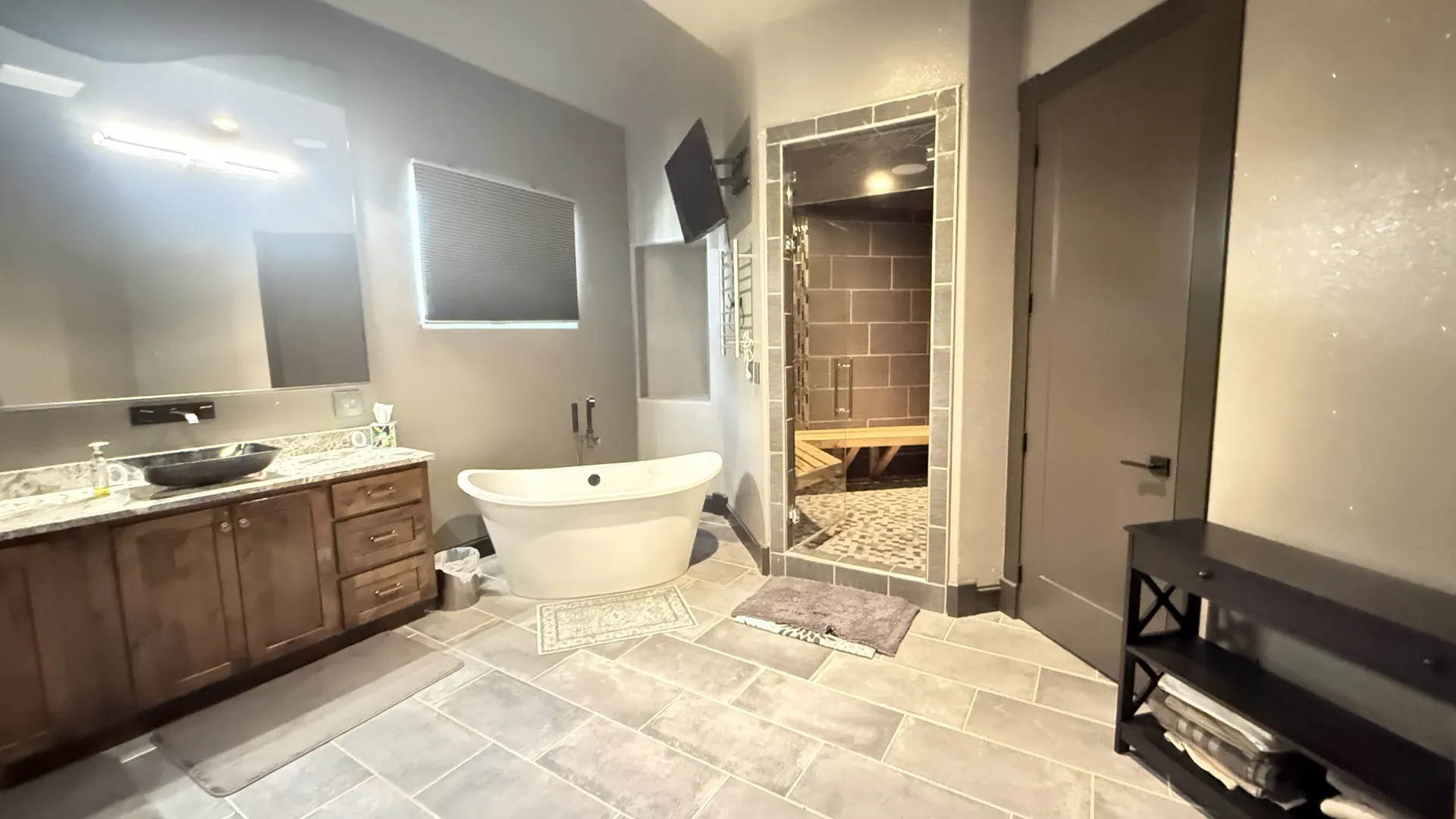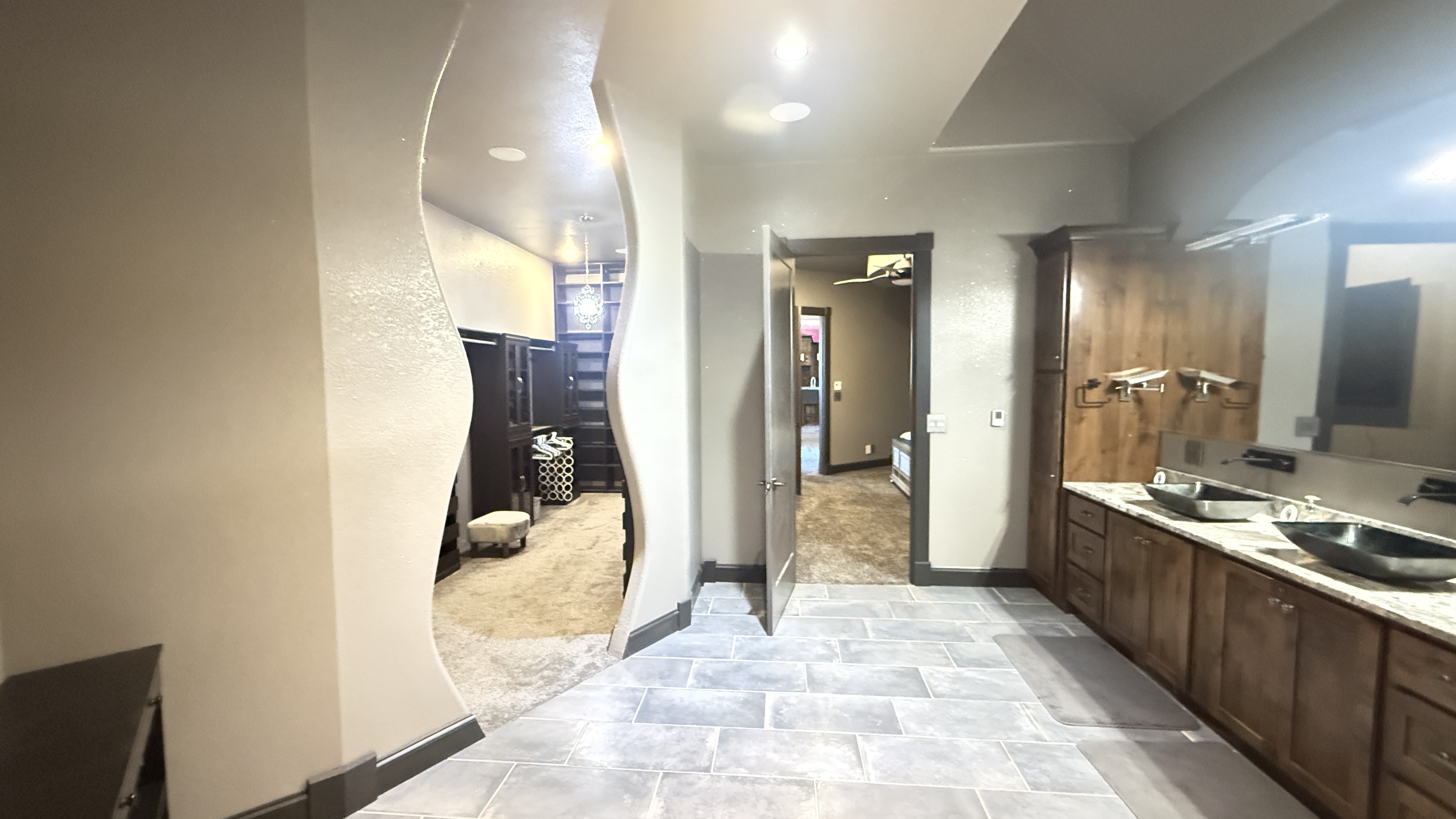 The master suite offers a private retreat with eastern sunrise views, a spa-inspired steam shower, soaking tub, and a thoughtfully designed custom closet. Additional living spaces provide flexibility for family, guests, or home office use.