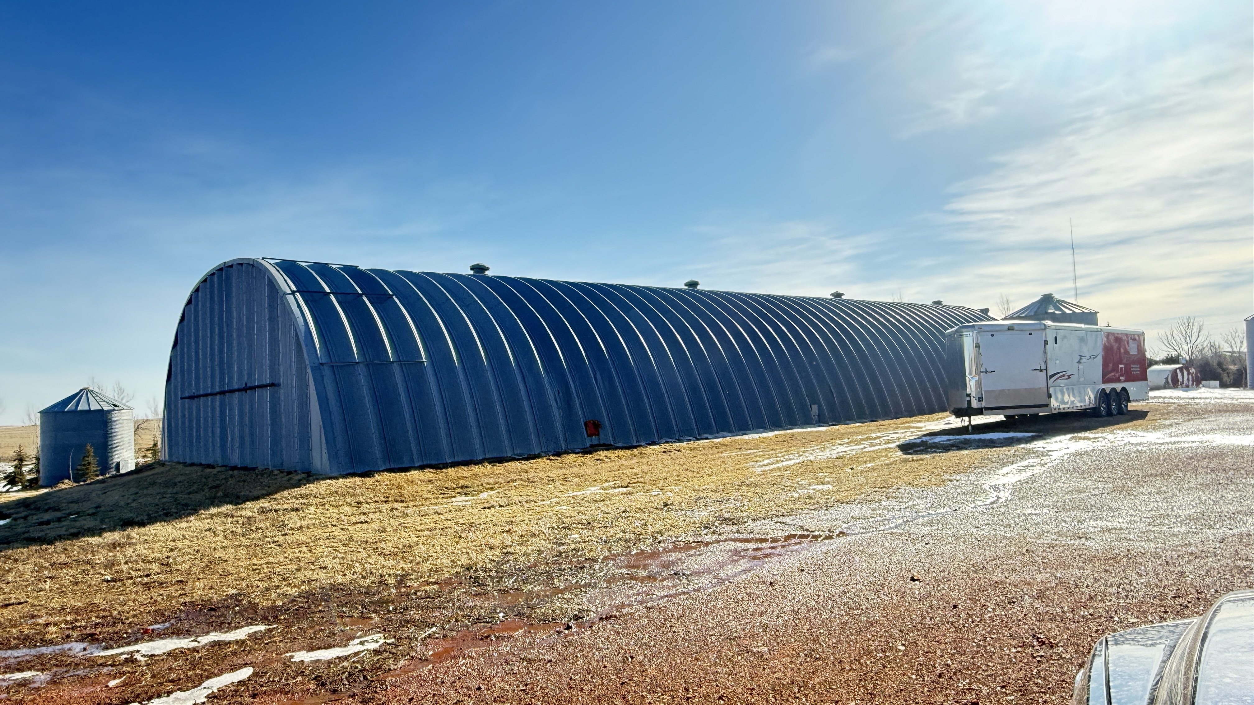 Parcel 2 includes productive cropland along with the established farm and ranch headquarters for this generational operation. The tract is well laid out for day-to-day use and features a practical residence supported by a strong set of working improvements, including a shop, livestock barn, working corrals, and grain storage. The yard is well sheltered with mature trees and offers direct access to a main paved road, allowing for efficient movement of equipment and livestock.