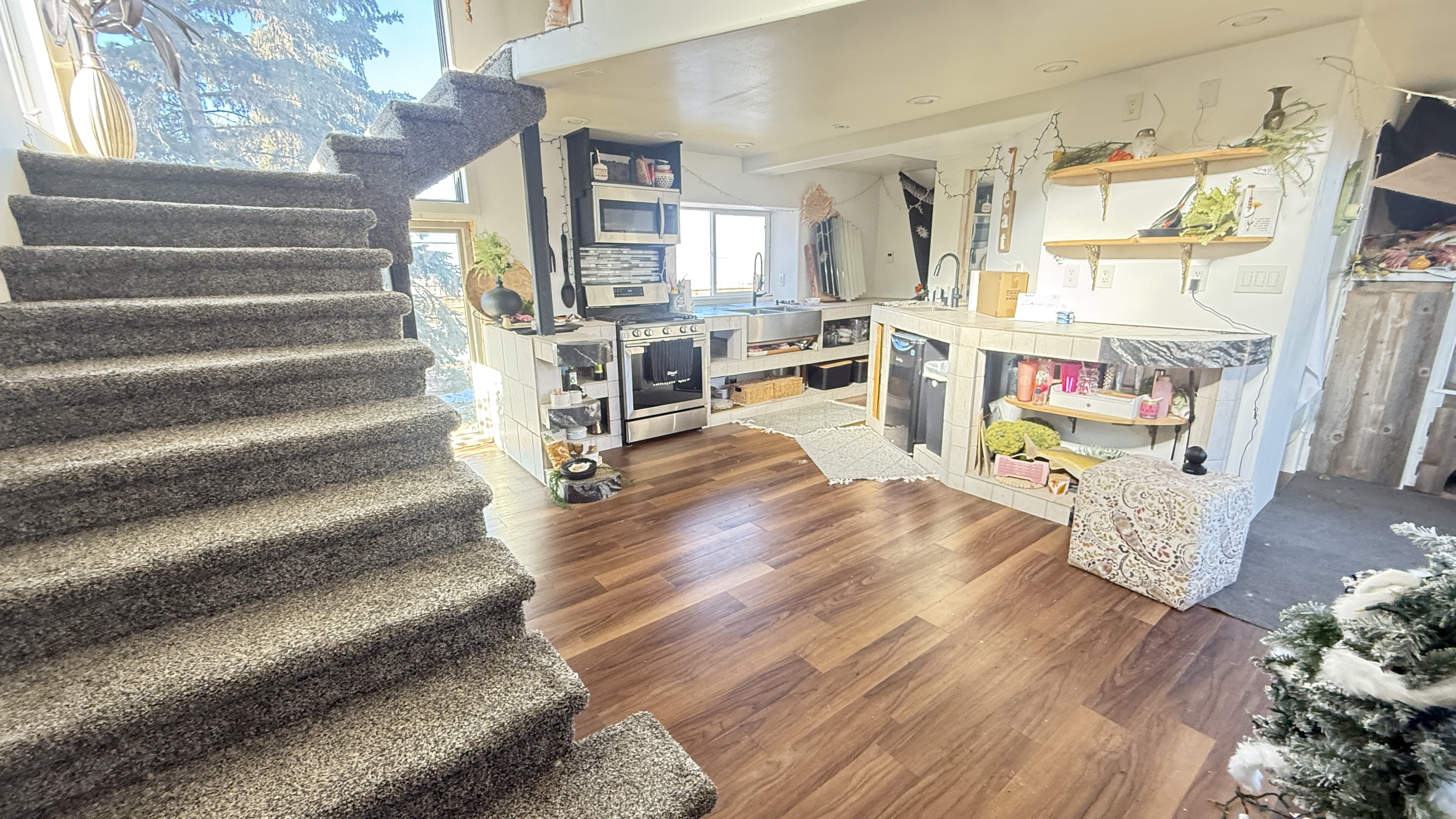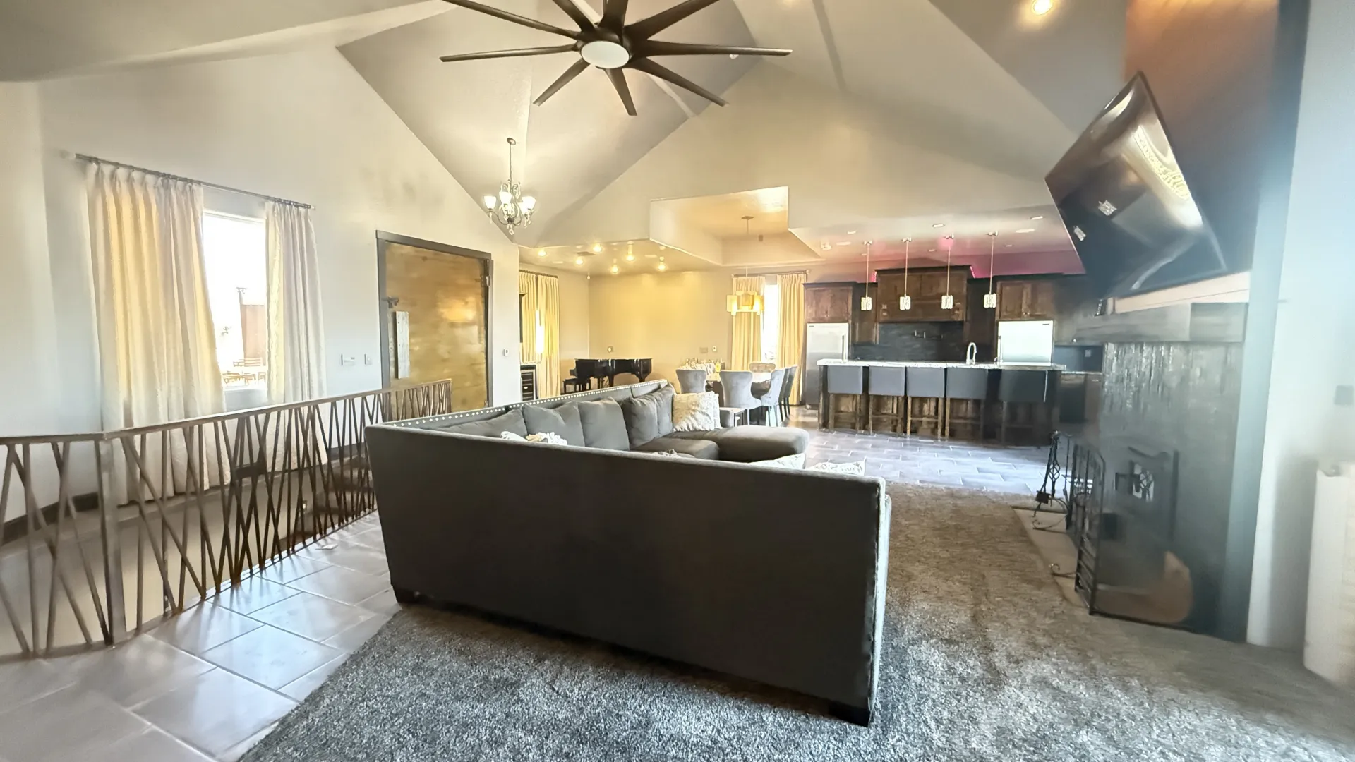 This exceptional 49.69 +/- acre parcel is highlighted by a luxurious, custom-built 6,200 sq. ft. executive home designed with both craftsmanship and comfort in mind. The residence features an open layout anchored by a striking custom metal front door, a chef’s kitchen with professional-grade appliances, and an inviting living area accented by artistic railings and a dramatic loft.