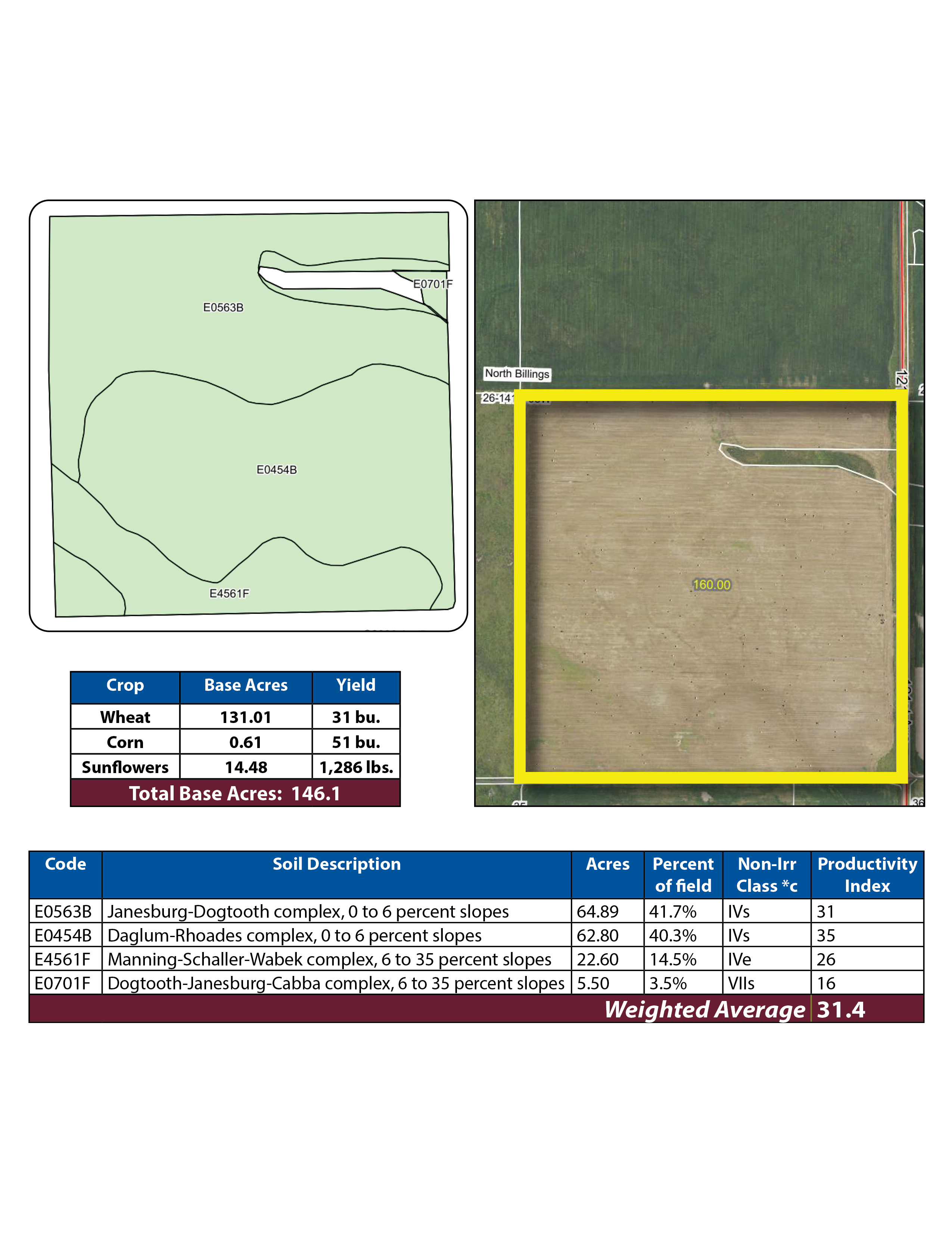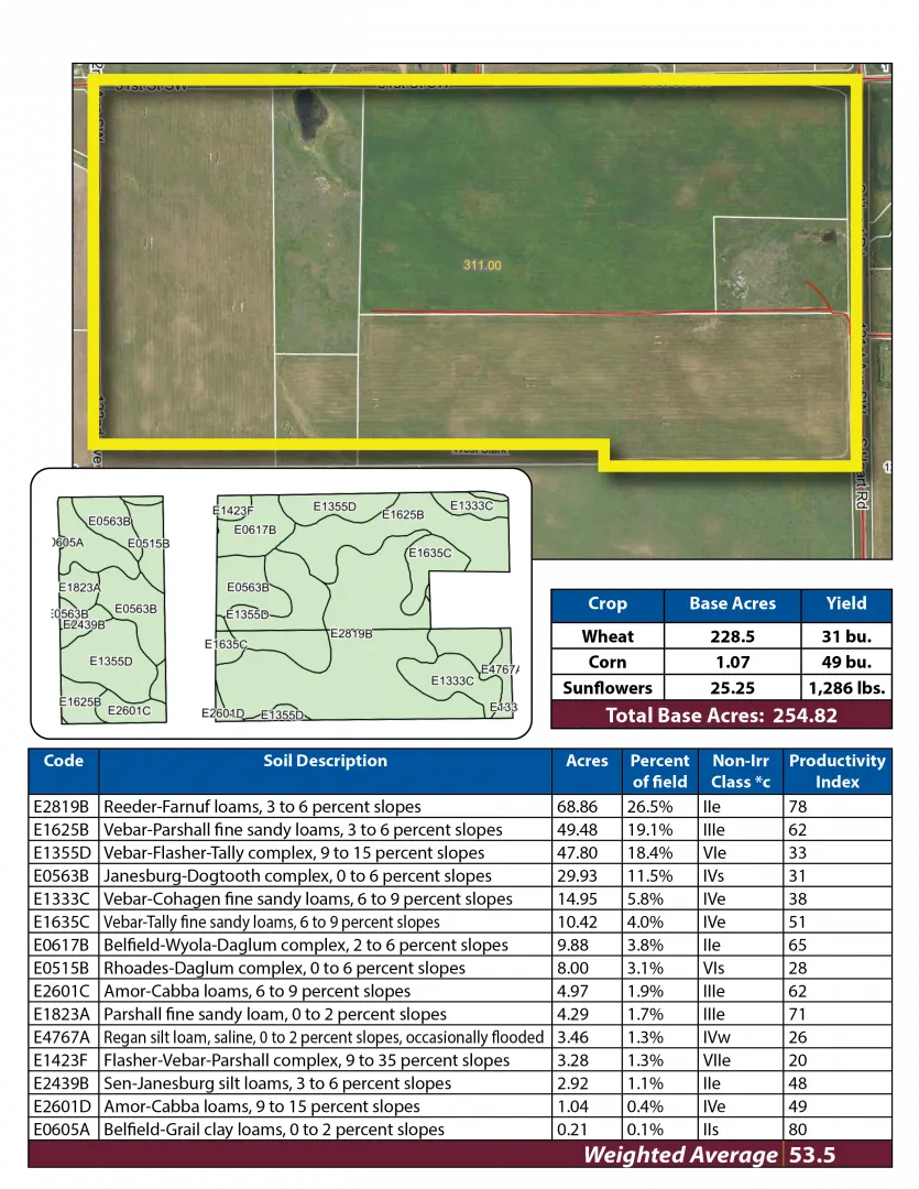 Located in Billings County, parcel 4 consists of hayland with a practical layout and reliable access via a well-maintained county road. The parcel carries a SPI of 31.4 and has been managed for forage production.