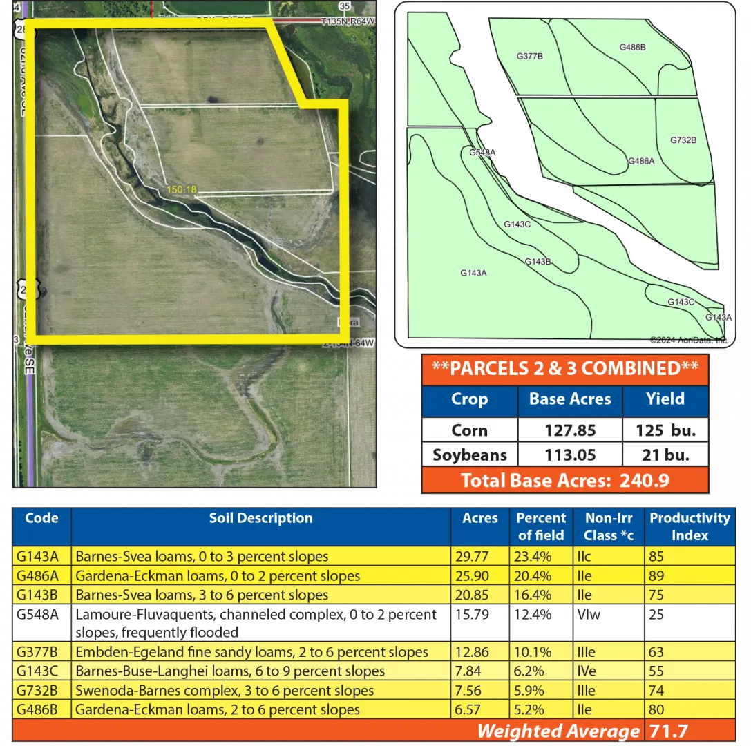 Don’t miss this opportunity to own quality cropland in LaMoure County, ND. This auction will be offered in 4 parcels that feature excellent soils, some drain tile and good access along the Hwy. #281 corridor. The cropland highlights quality Barnes Svea Loams soils in this offering with an impressive Soil Productivity Index (SPI) of 85. Whether you’re expanding your farm or looking to diversify your investment portfolio, this land’s strong soils, prime location, and versatility make it an ideal addition.