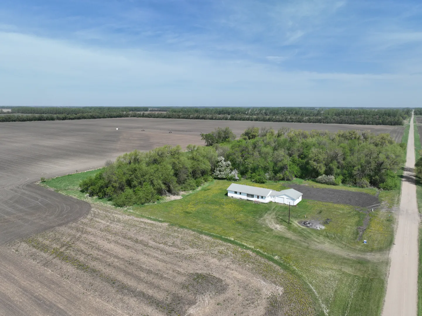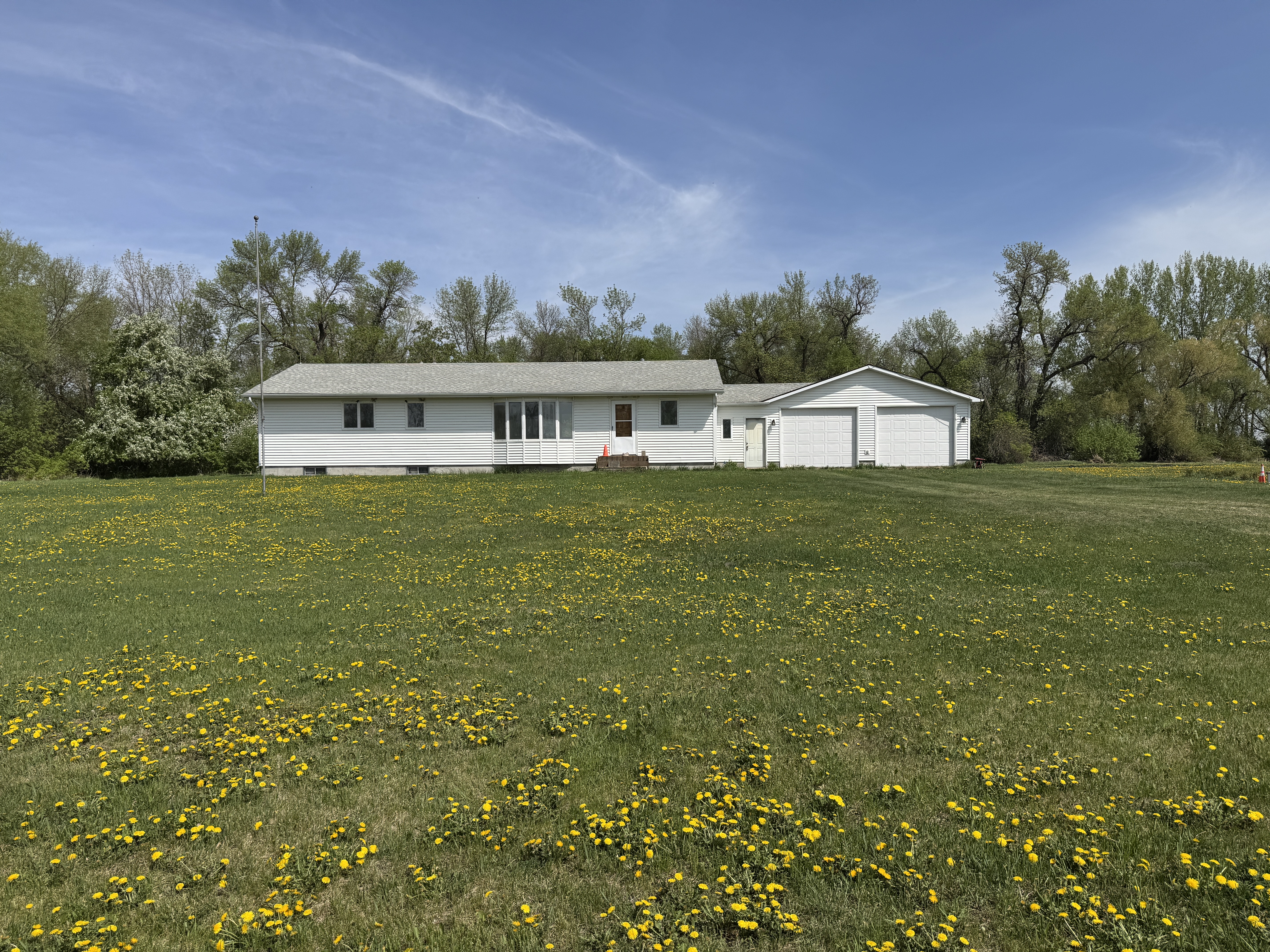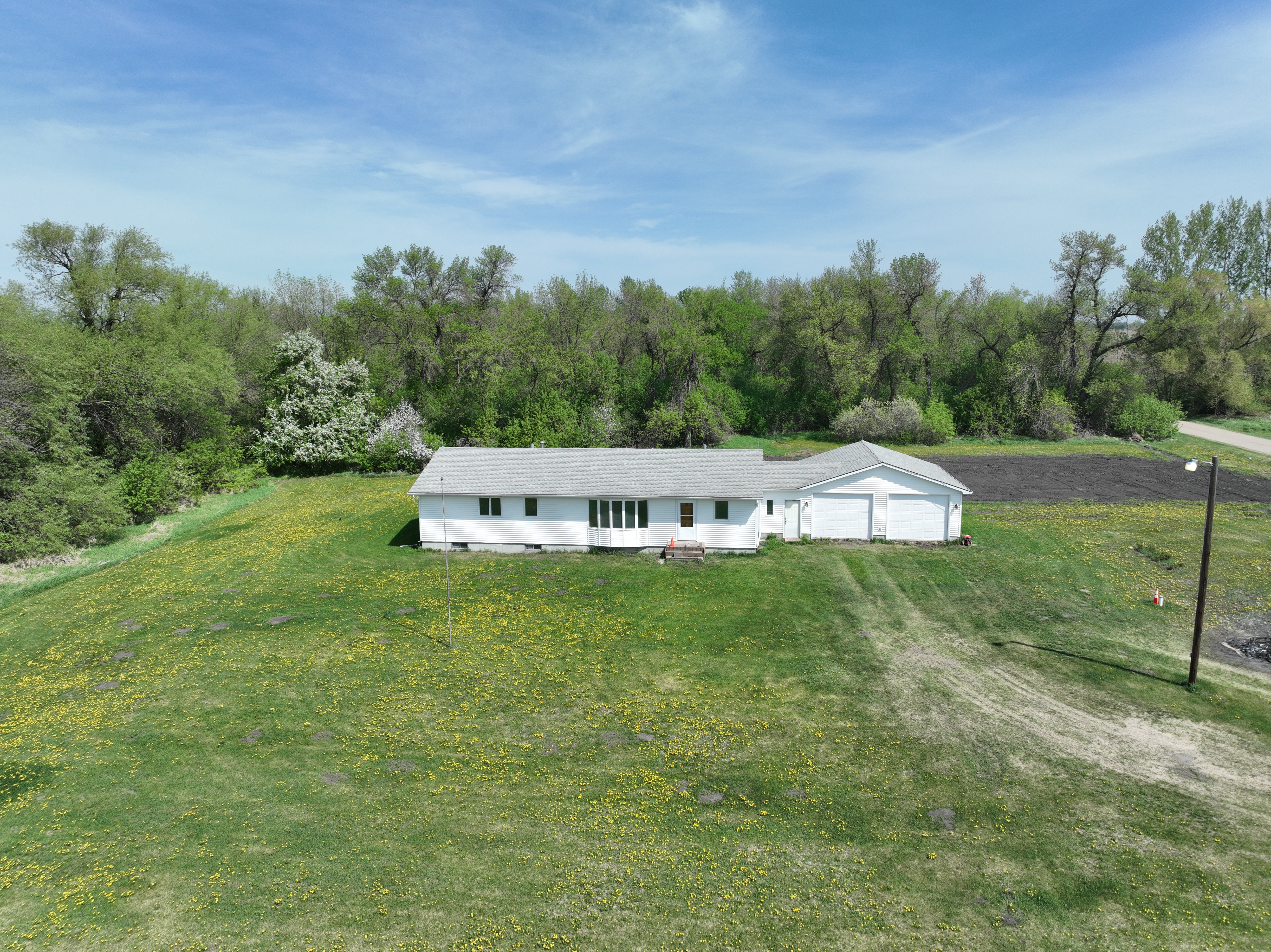 This Grand Forks County farmstead features 9.44 +/- acres and a 1,602 sq. ft. home with three bedrooms, two bathrooms, and a two-car garage – all set in a beautiful farmstead setting. Mature trees surround the property with deer and other wildlife often spotted on the property. Great potential setup with grassing areas for horses and other small livestock or for future outbuildings. The interior of the home needs finishing such as wall texture & paint, cabinetry & woodwork paint/varnishing, flooring, some trim and hanging closet doors perfect for adding your own touch to your home!