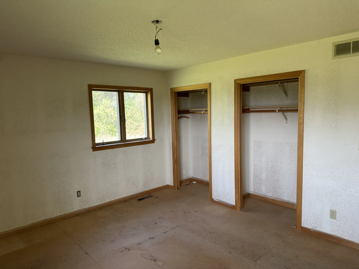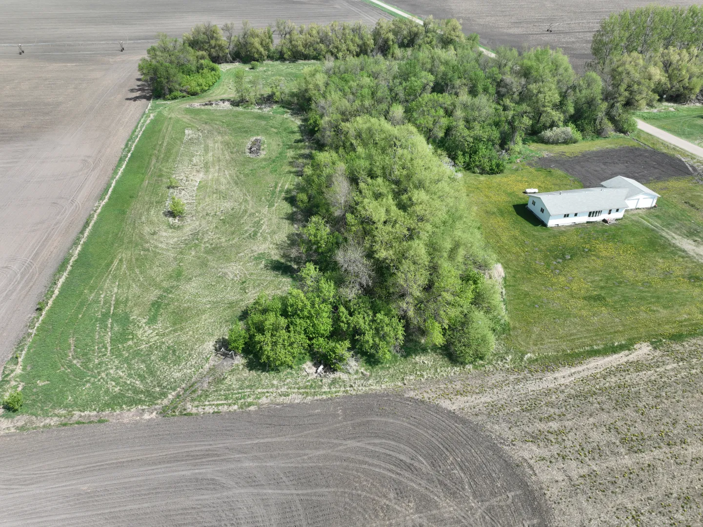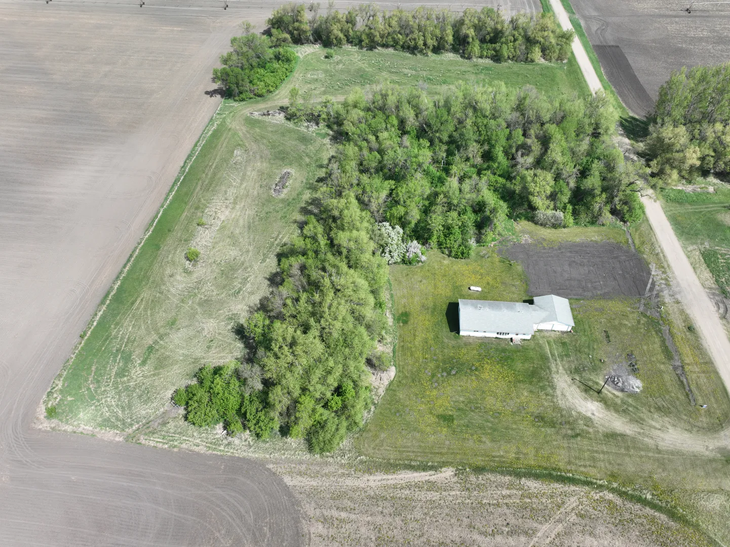 This Grand Forks County farmstead features 9.44 +/- acres and a 1,602 sq. ft. home with three bedrooms, two bathrooms, and a two-car garage – all set in a beautiful farmstead setting. Mature trees surround the property with deer and other wildlife often spotted on the property. Great potential setup with grassing areas for horses and other small livestock or for future outbuildings. The interior of the home needs finishing such as wall texture & paint, cabinetry & woodwork paint/varnishing, flooring, some trim and hanging closet doors perfect for adding your own touch to your home!
