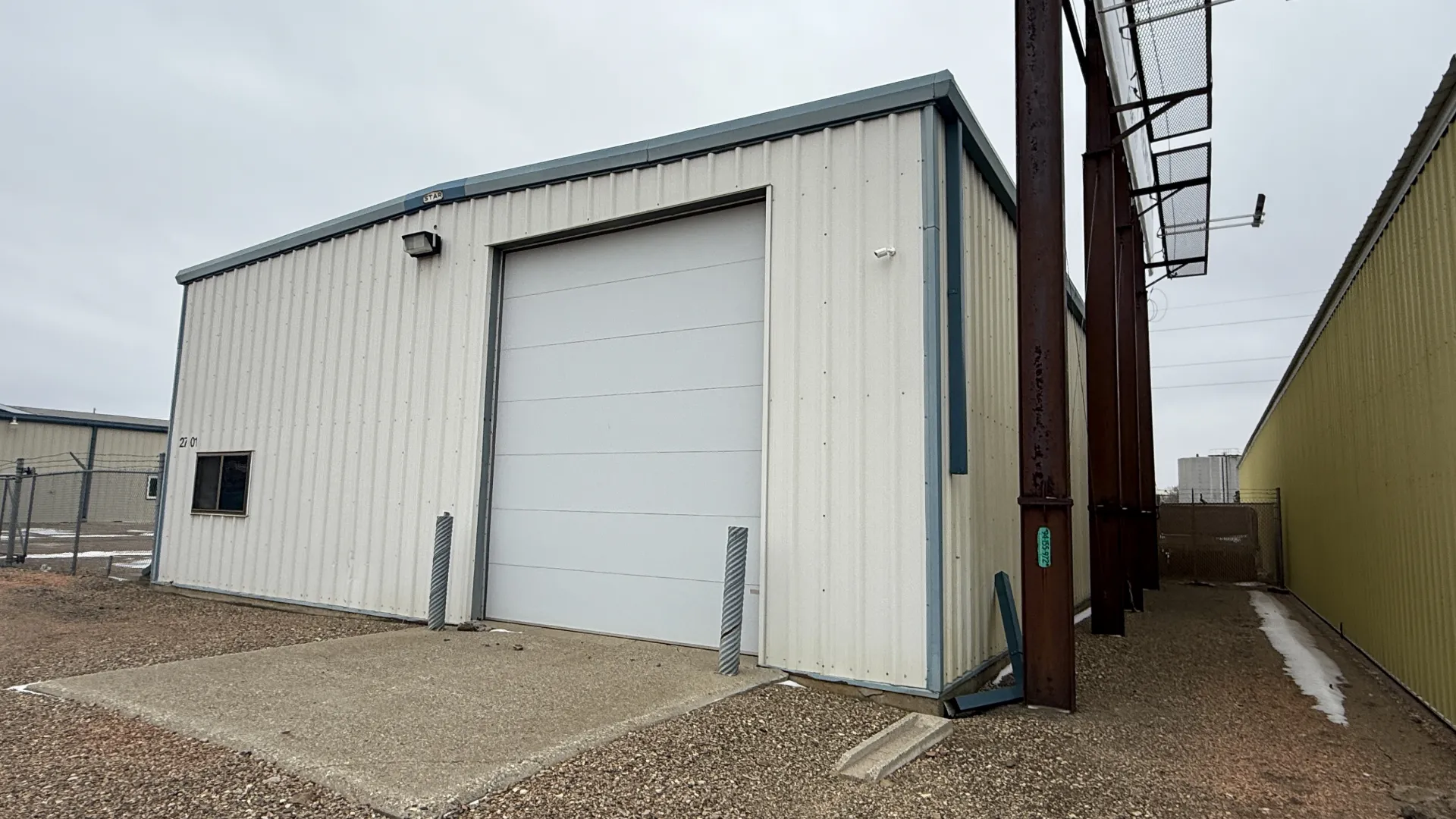 Features: Cement Aprons, Cement Foundation, Steel Construction, Insulation, Office/Bathroom Mezzanine (17’ x 35’)