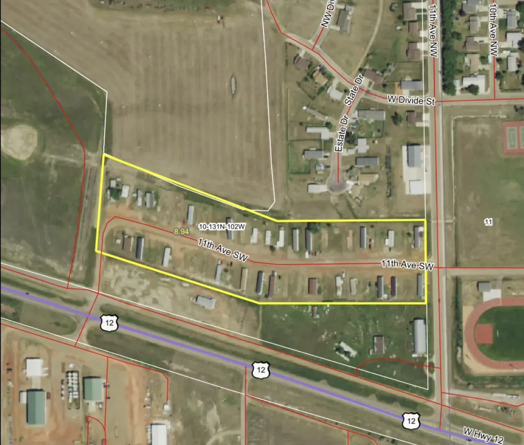 Investment opportunity!  This mobile home court is located conveniently off of Hwy 12 and Hwy 85, directly across from the high school in Bowman, ND.  There are 48 total permanent spots in the court, with 21 spots being currently rented.