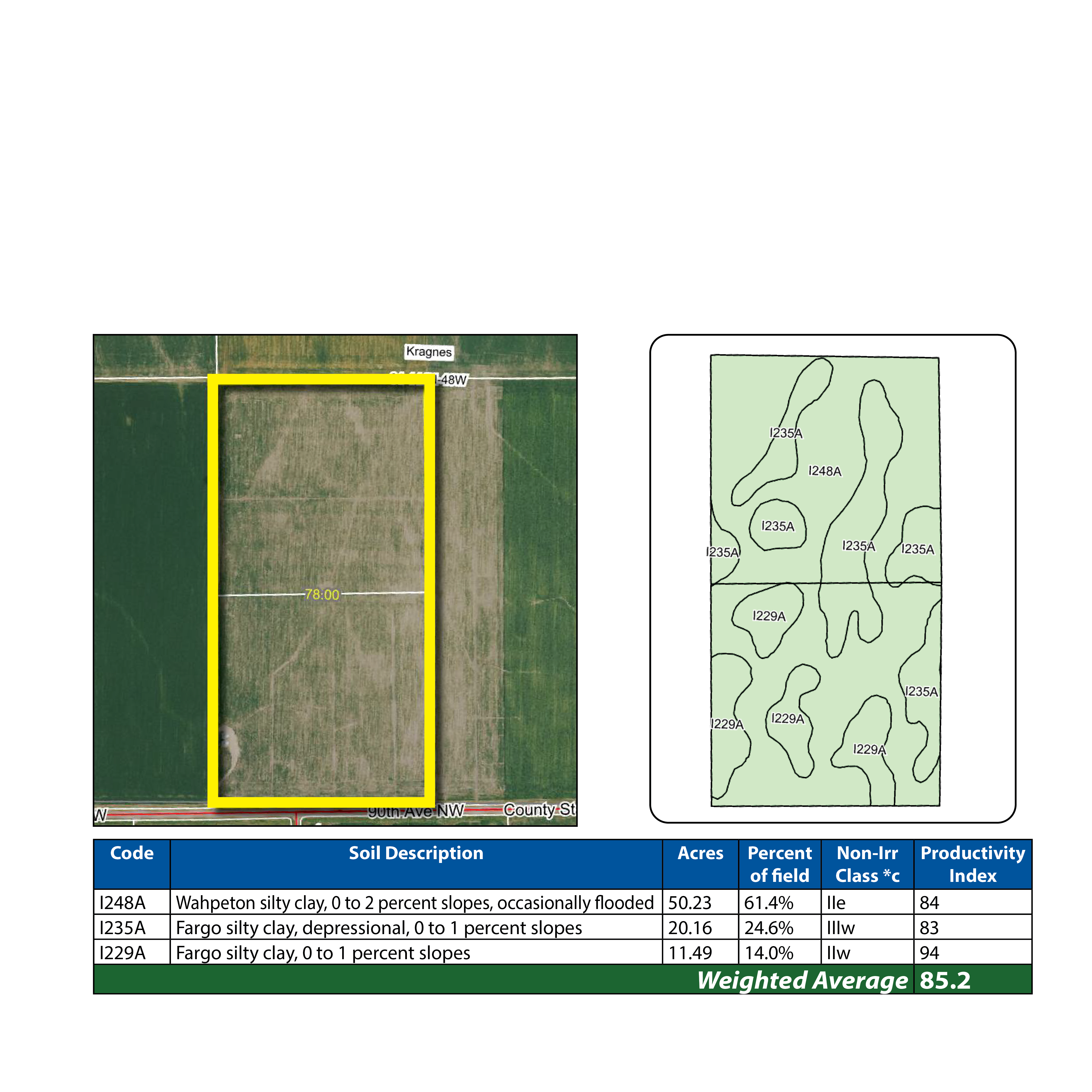 This offering features 78 +/- acres in a prime agricultural area just 3 miles east of Harwood, ND and 3 miles west of Kragnes, MN. The property includes 76.33 +/- crop acres and two high-capacity grain bins with a total storage of 75,000 +/- bushels. Both bins are equipped with full aeration, three-phase power, and are set up for remote monitoring. Positioned along County Rd. #26, the parcel offers excellent year-round access and is conveniently located near the Fargo-Moorhead area, making it ideal for both local producers and agricultural investors. The infrastructure, combined with productive soils and proximity to major grain markets, makes this property a rare find and potential upside.