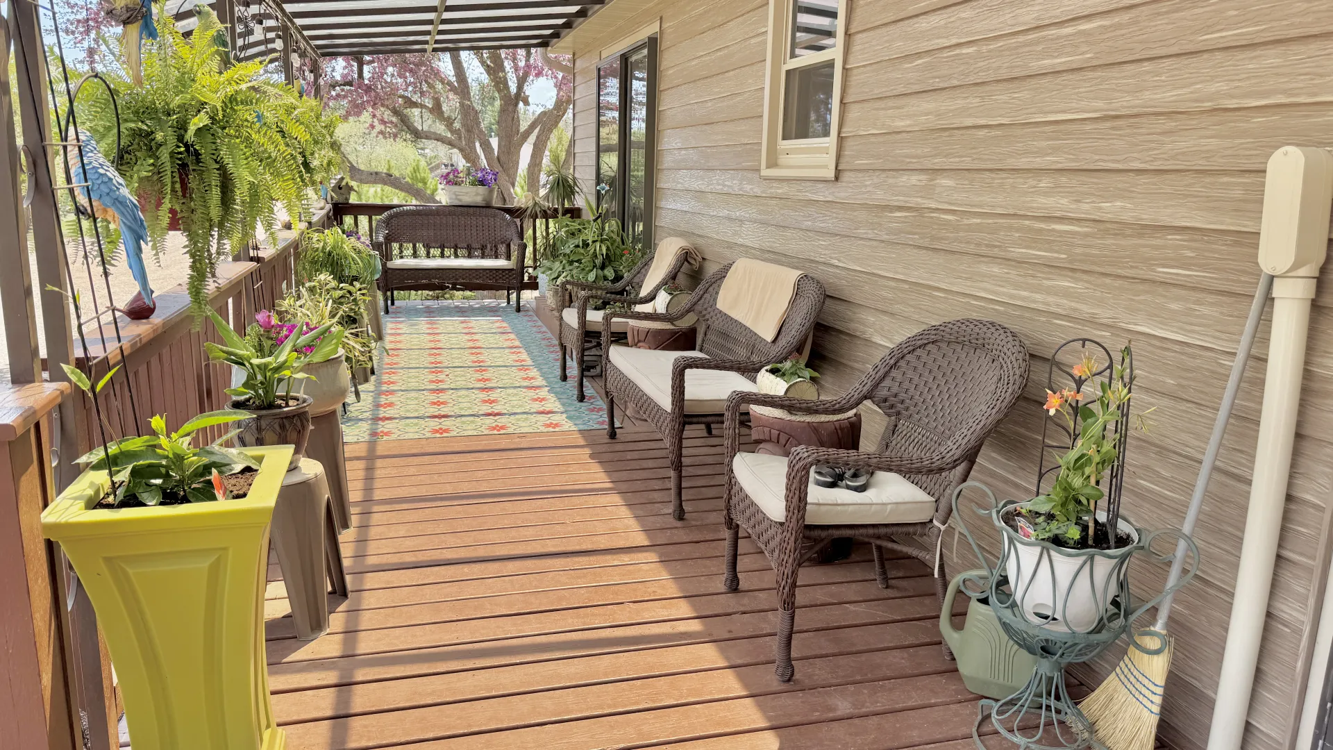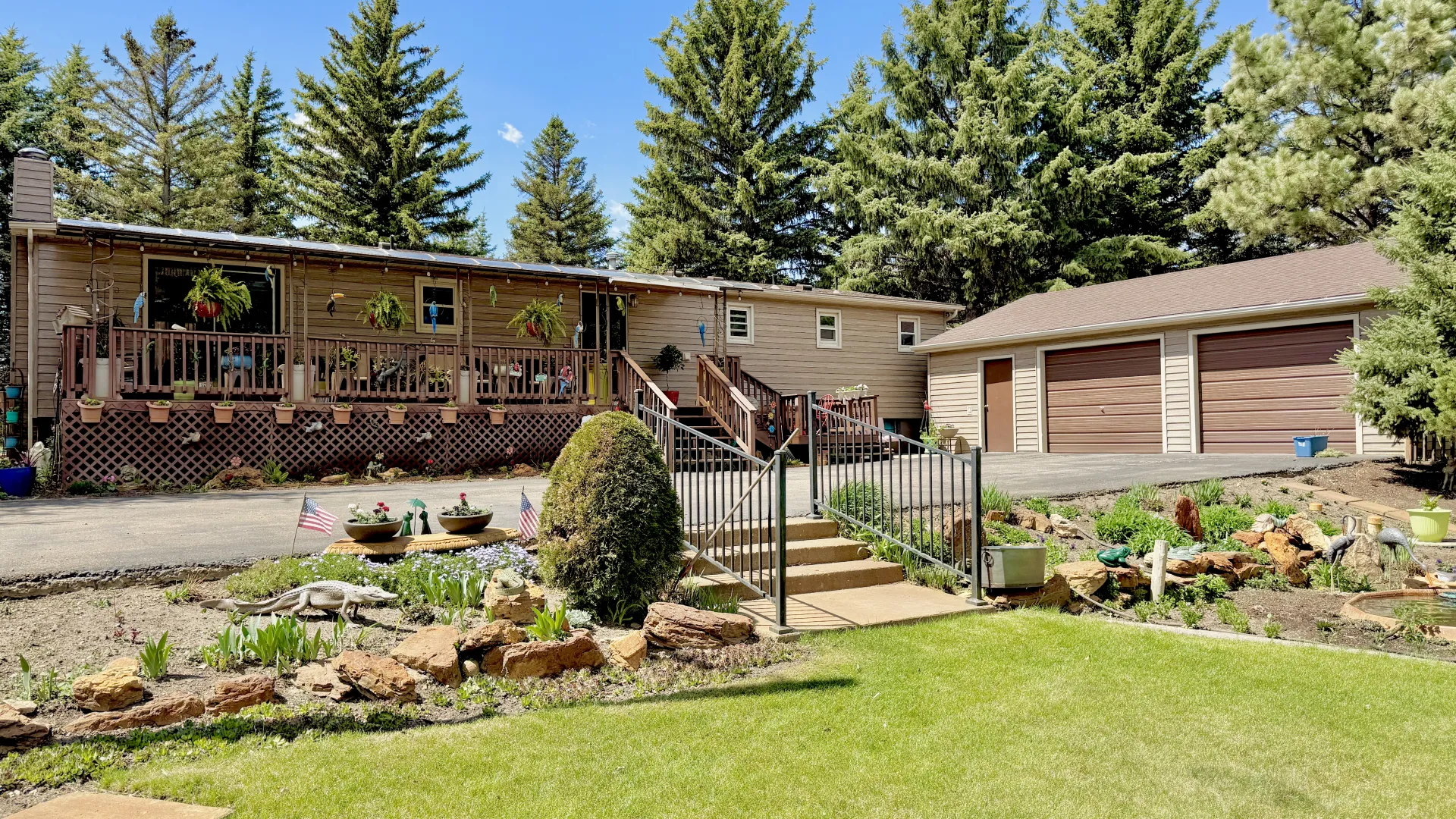 The main floor boasts a welcoming layout with a bright living room, formal dining area, and a spacious eat-in kitchen. There are two comfortable bedrooms, a full bathroom, and a private master suite complete with its own full bathroom and walk-in closet. Enjoy outdoor living and entertaining on the large covered front deck, perfect for gatherings or relaxing evenings.